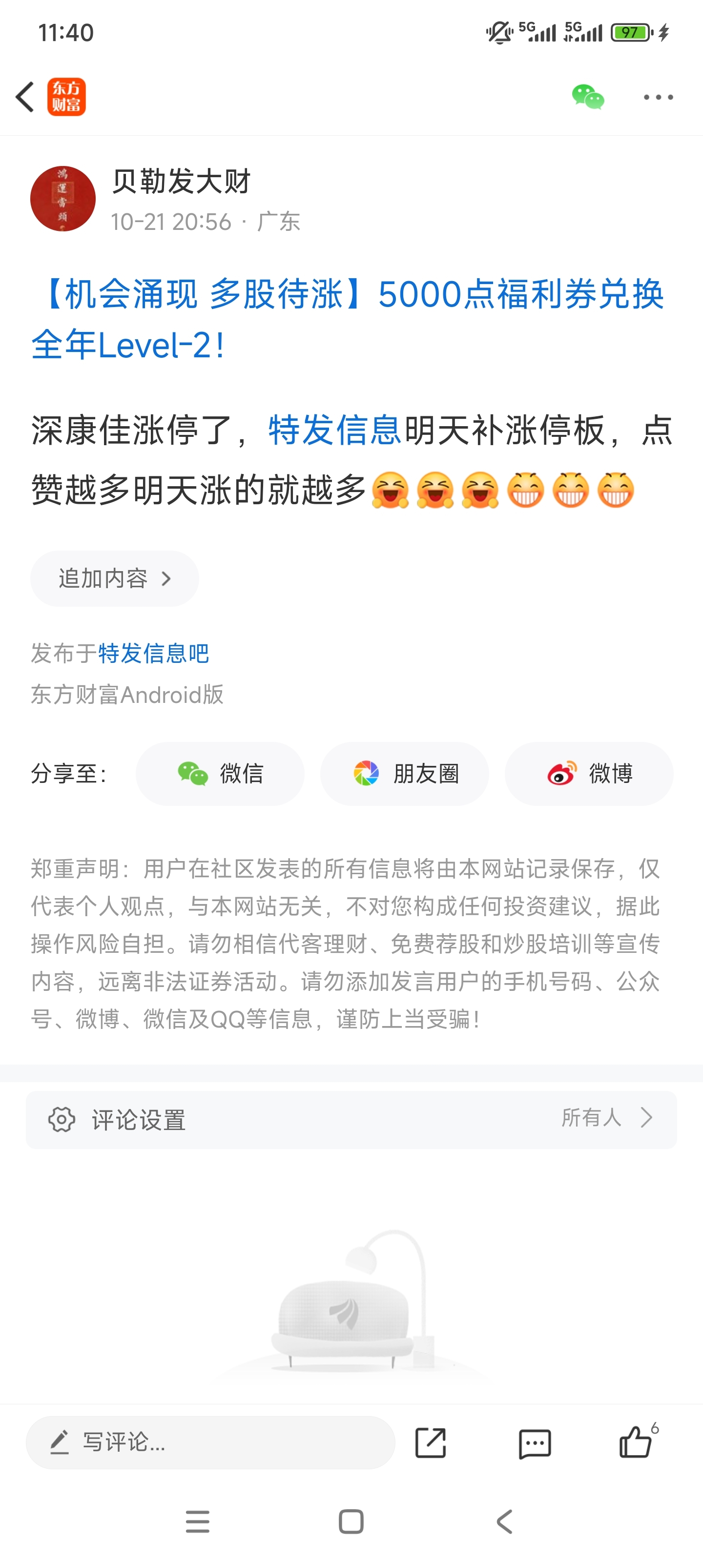温馨提示: 1.根据《证券法》规定,禁止编造、传播虚假信息或者误导性信息,扰乱证券市场;2.用户在本社区发表的所有资料、言论等仅代表个人观点,与本网站立场无关,不对您构成任何投资建议。用户应基于自己的独立判断,自行决定证券投资并承担相应风险。《东方财富社区管理规定》