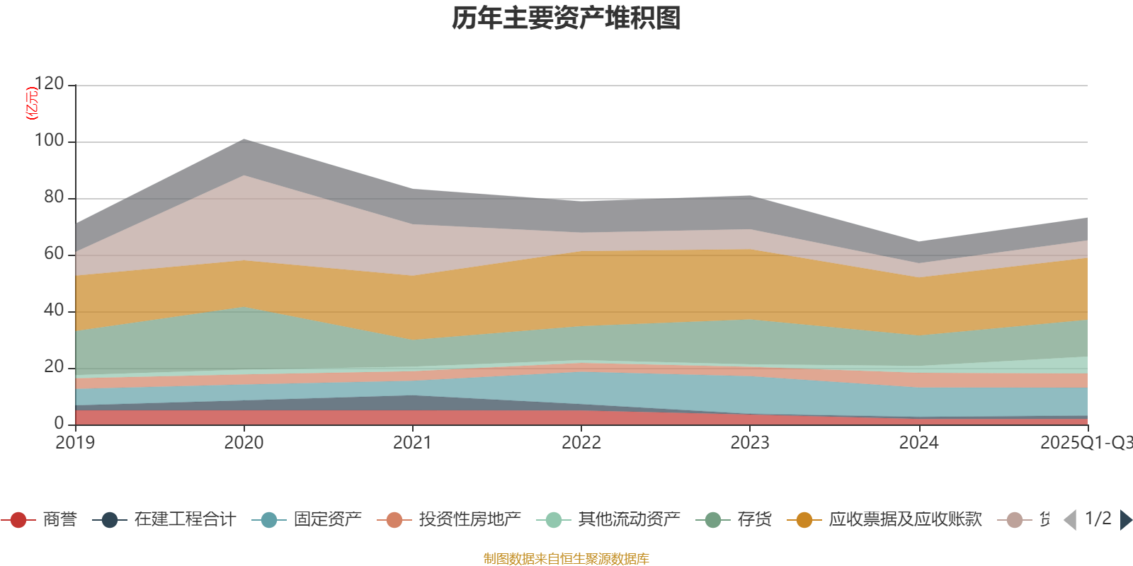 资产重大变化方面,截至2025年三季度末,公司其他流动资产较上年末增加142.73%,占公司总资产比重上升4.37个百分点;固定资产较上年末减少4.98%,占公司总资产比重下降2.56个百分点;应收票据及应收账款较上年末增加6.44%,占公司总资产比重下降1.87个百分点;存货较上年末增加21.68%,占公司总资产比重上升1.26个百分点。