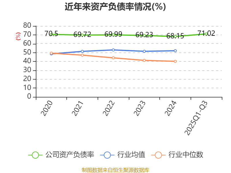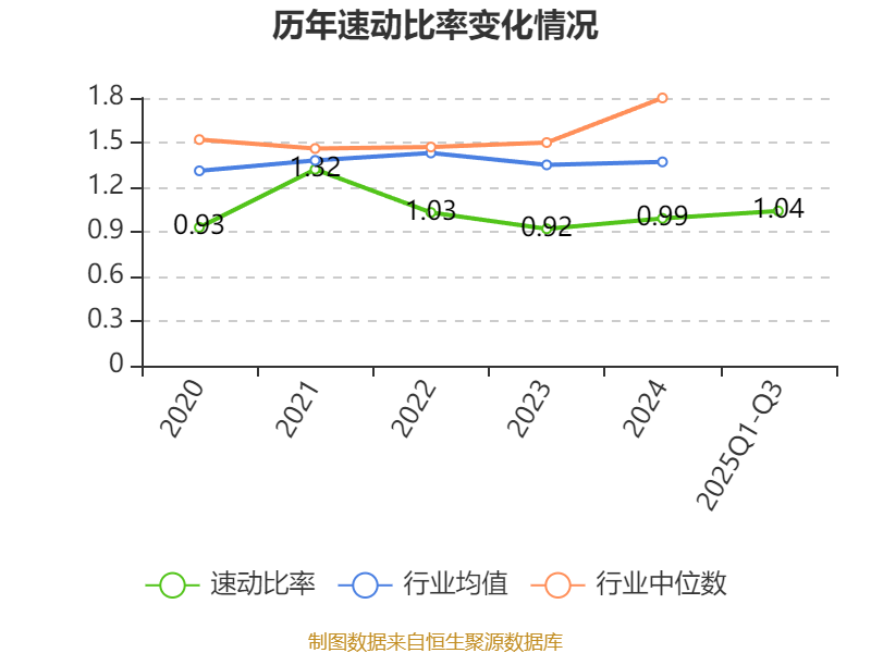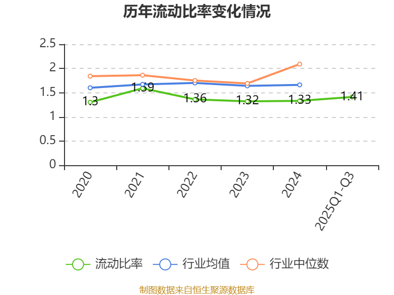 2025年前三季度,公司流动比率为1.41,速动比率为1.04。