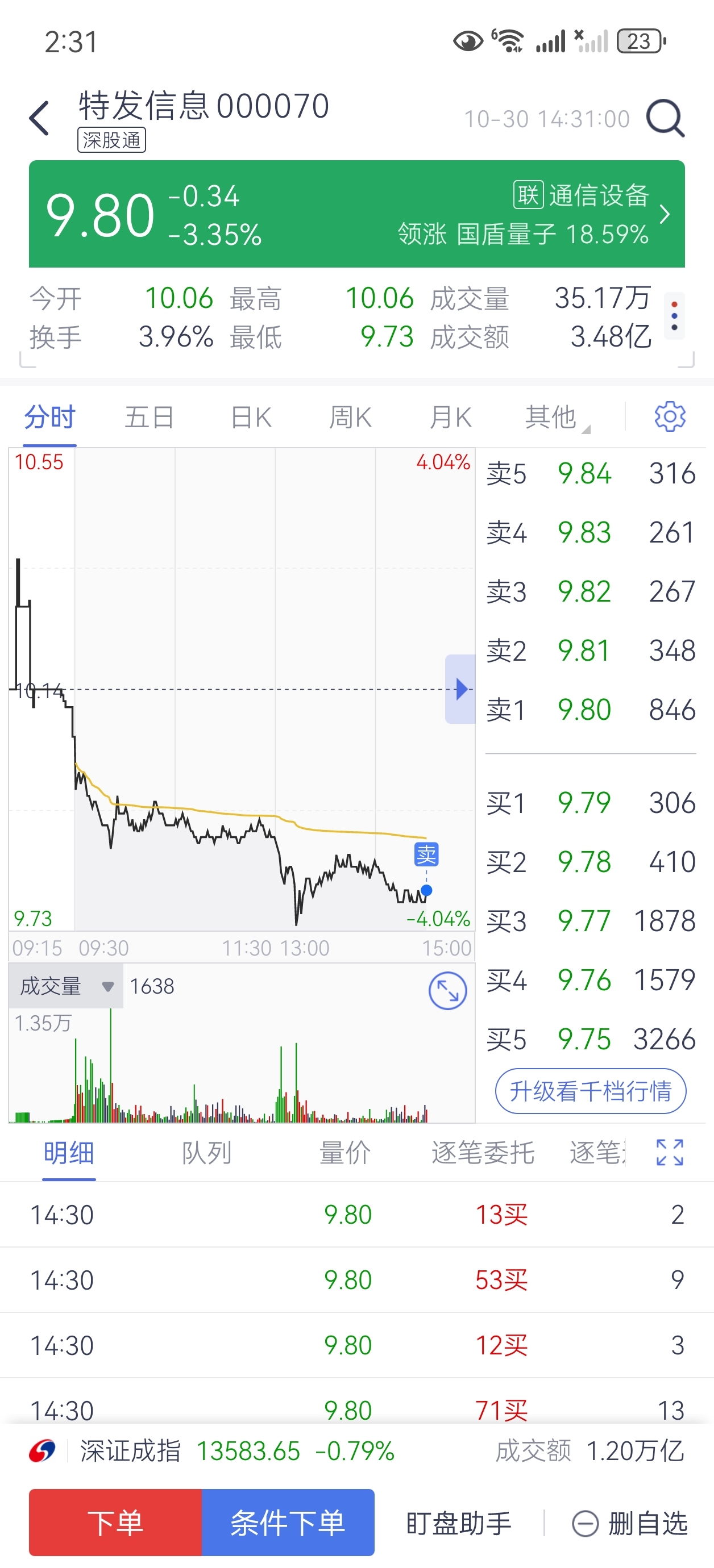 $特发信息(SZ000070)$  作为一个合格的金融消费者,韭菜们俺先割为敬