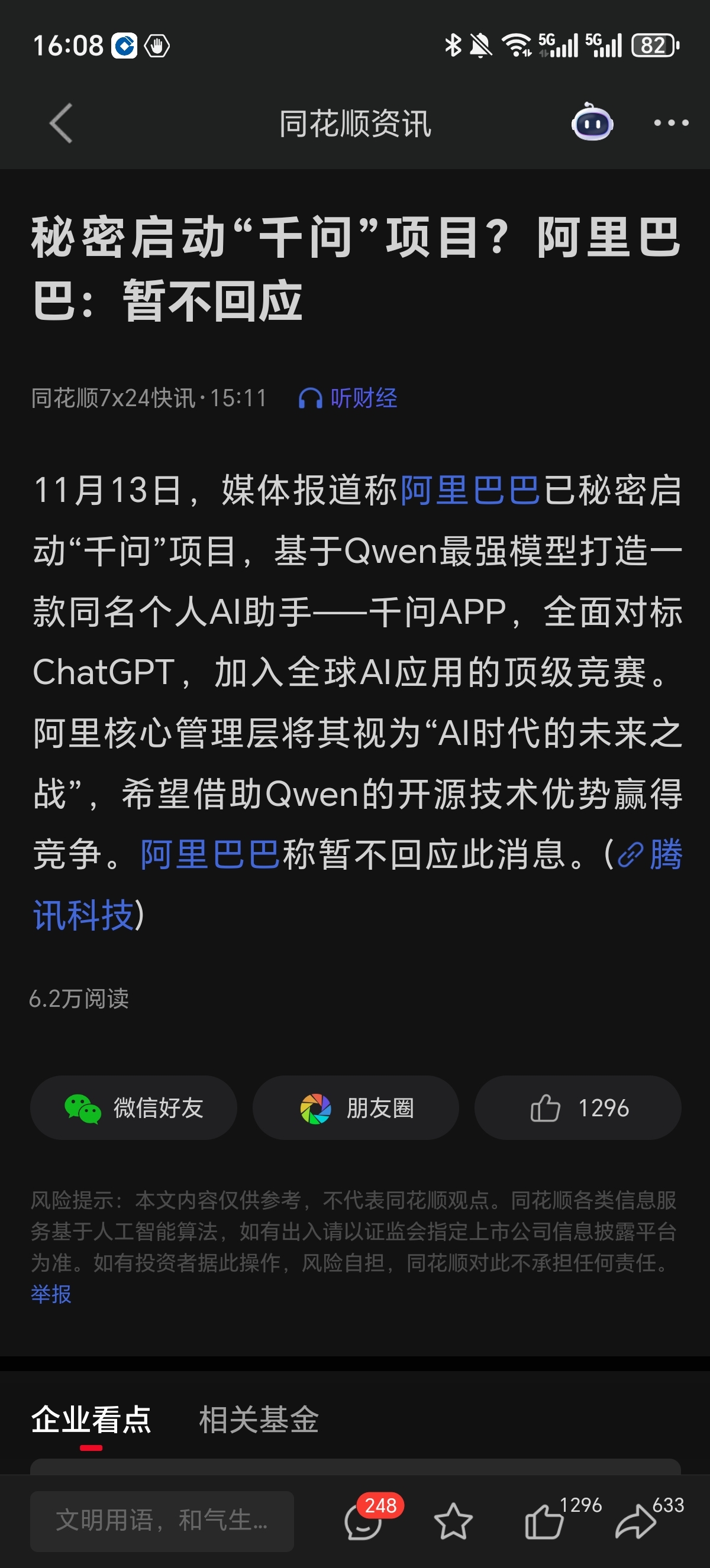 #阿里打造AI助手APP,全面对标ChatGPT#  $阿里巴巴-W(HK|09988)$