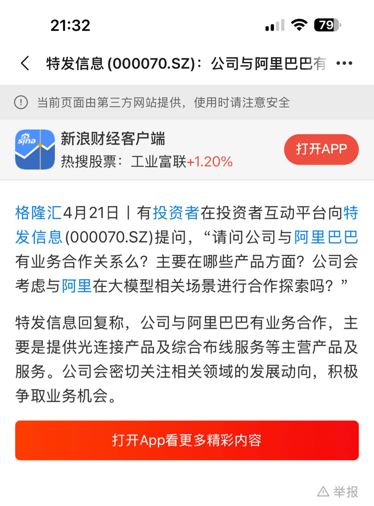 $特发信息(SZ000070)$ 阿里巴巴合作