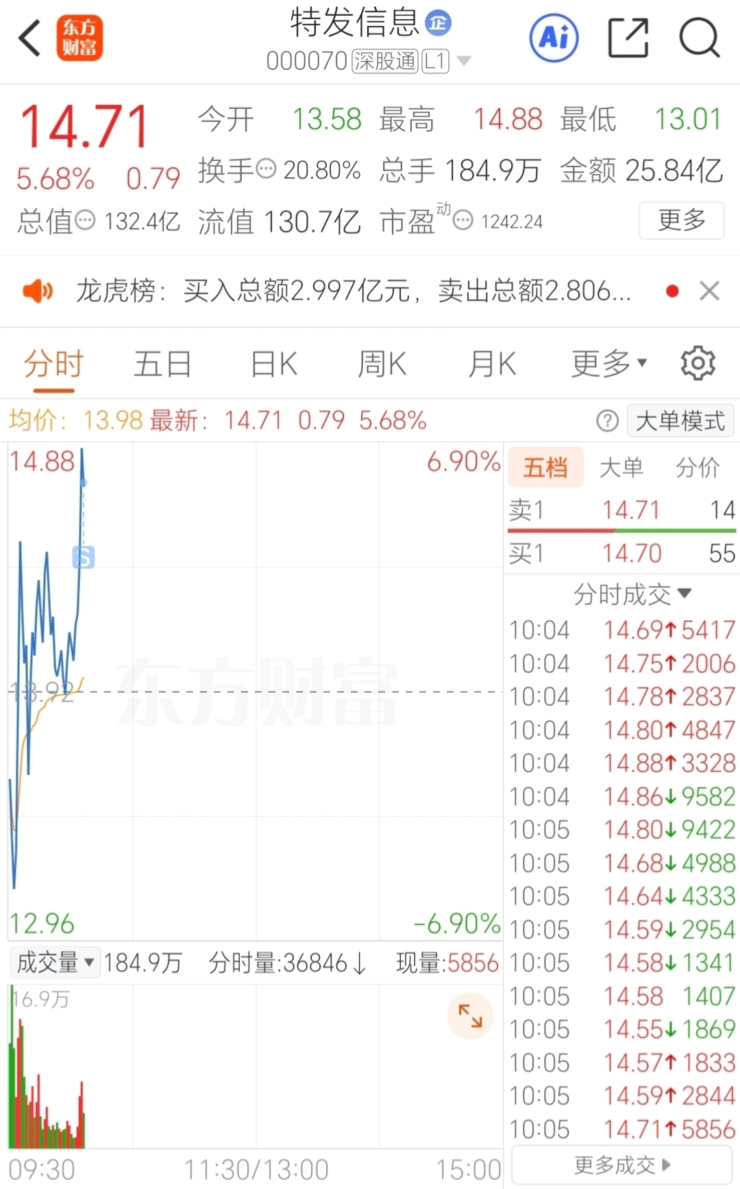 $特发信息(SZ000070)$ 还是不要太贪心,落袋为安才是