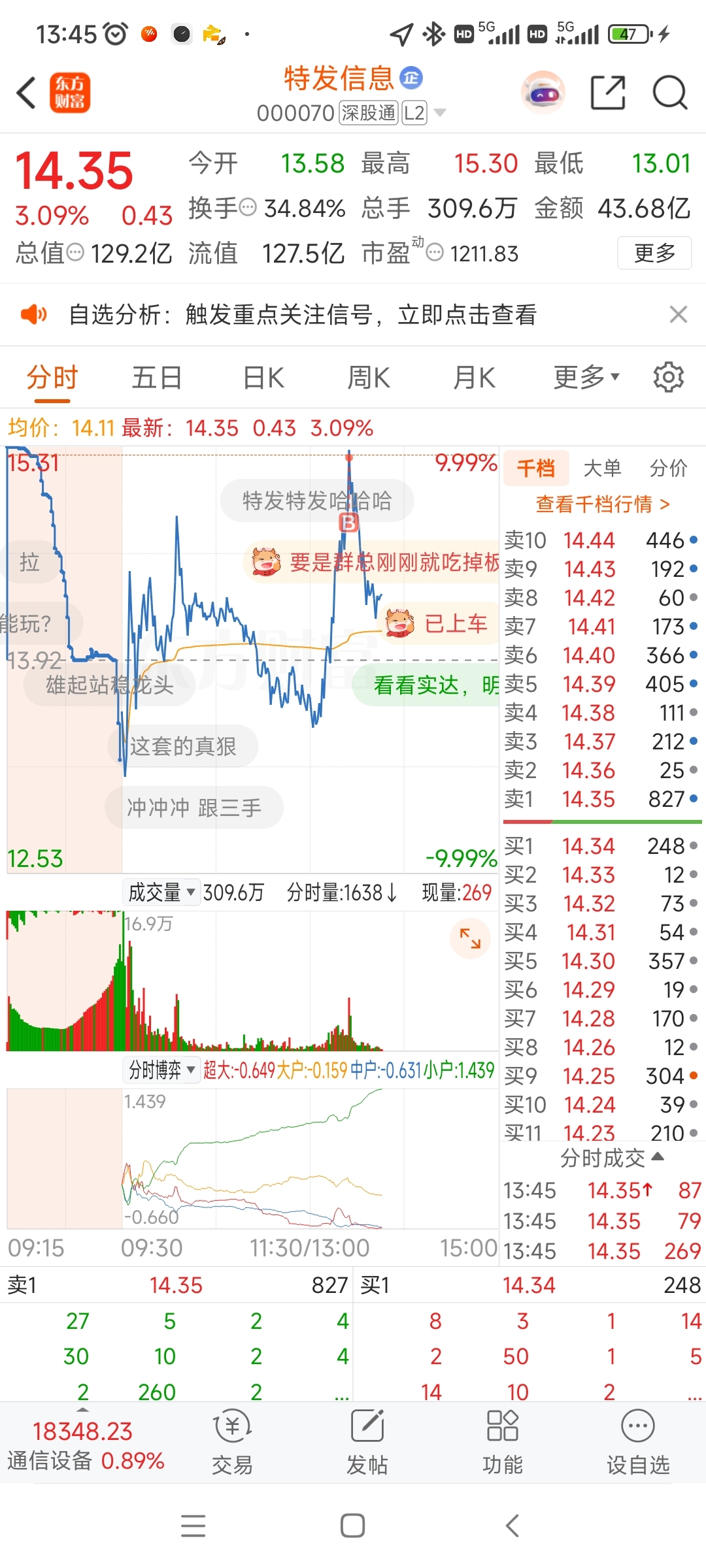 $特发信息(SZ000070)$ 山上凉嗖嗖