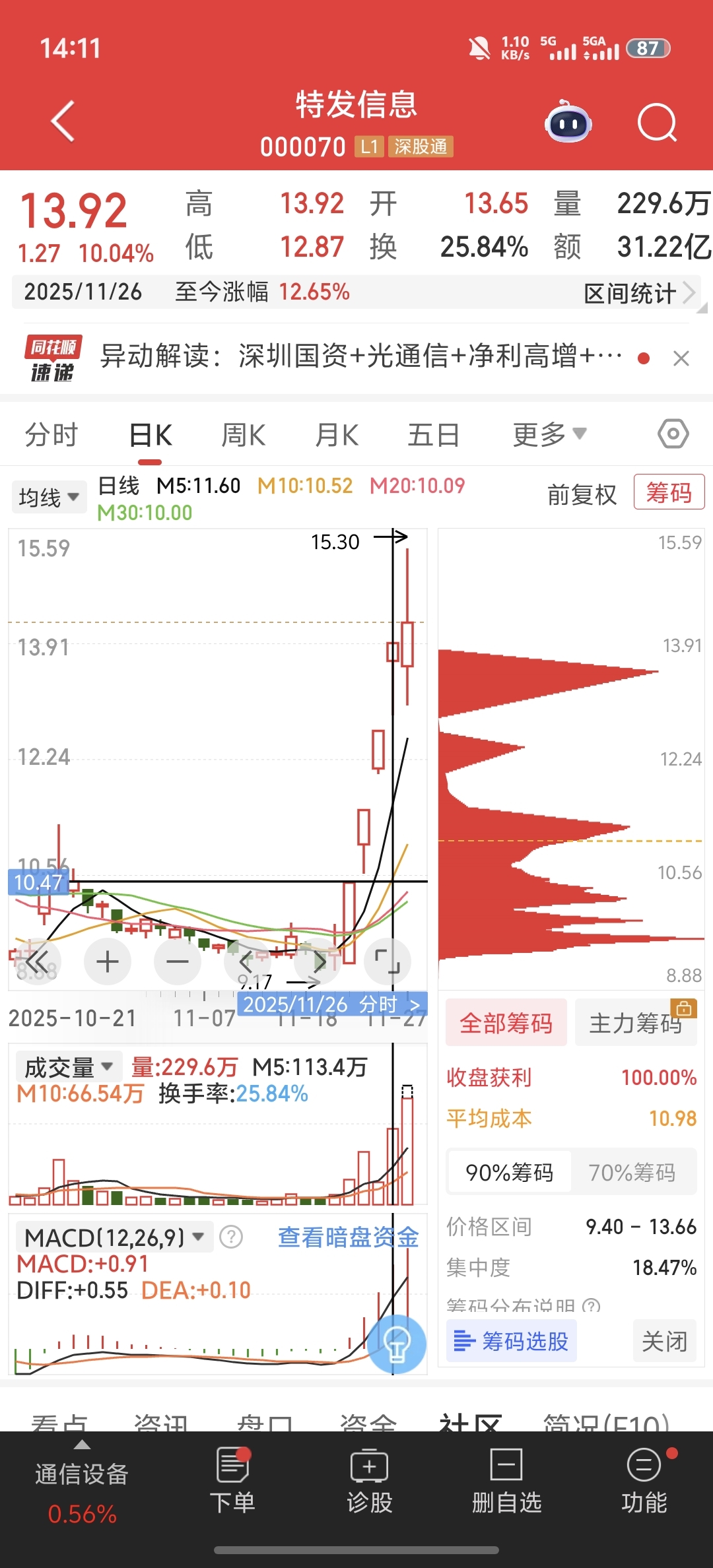 兄弟们别怕,我4个点买波动5个点之间,涨停7成跌停3成概率,明天不板走,底部筹码