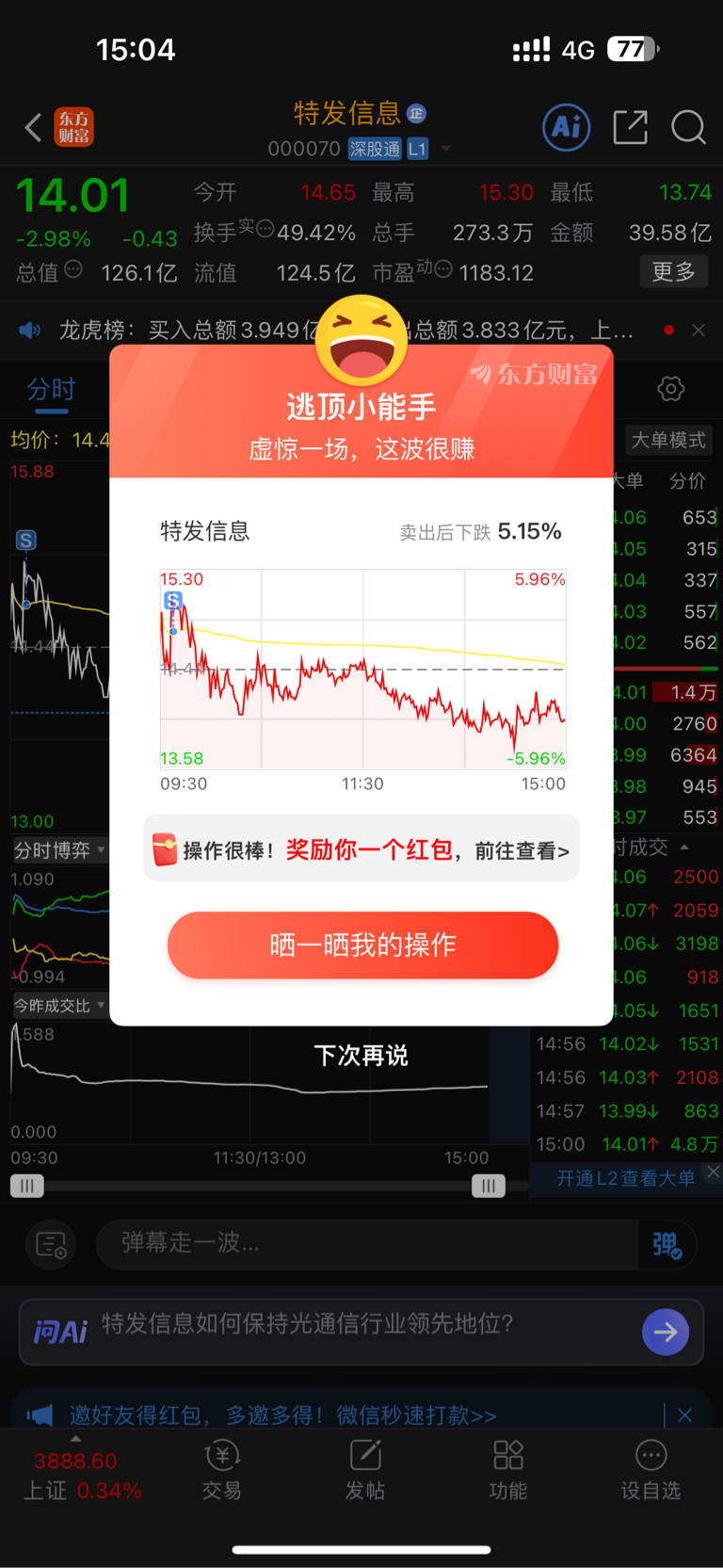 $特发信息(SZ000070)$ 跑的快 哈哈
