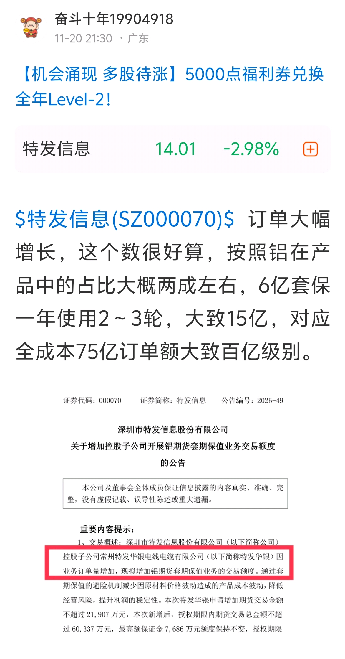 $特发信息(SZ000070)$ 上周大家为什么就是不相信呢?不过最近这一波有点出乎意料,短期已经看不准了,先走,留下的发财。
