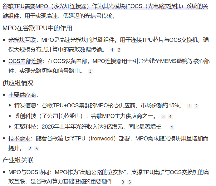 谷歌TPU+OCS集群的MPO核心供应商,市场份额约15%,主要利好特发!