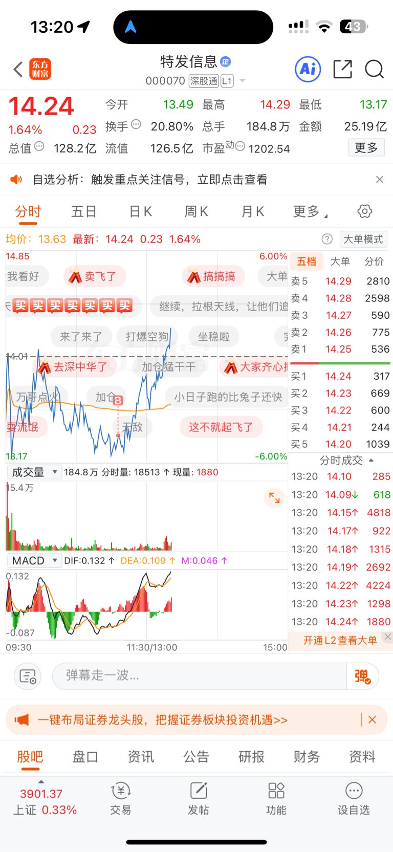 $特发信息(SZ000070)$ 空狗继续叫啊给我叫