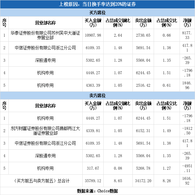 多主力现身龙虎榜,特发信息换手率达33.50%(12-01)