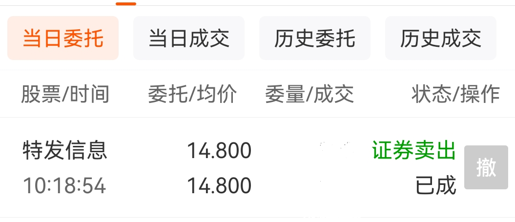 $特发信息(SZ000070)$ 刚好十个点,知足,撤