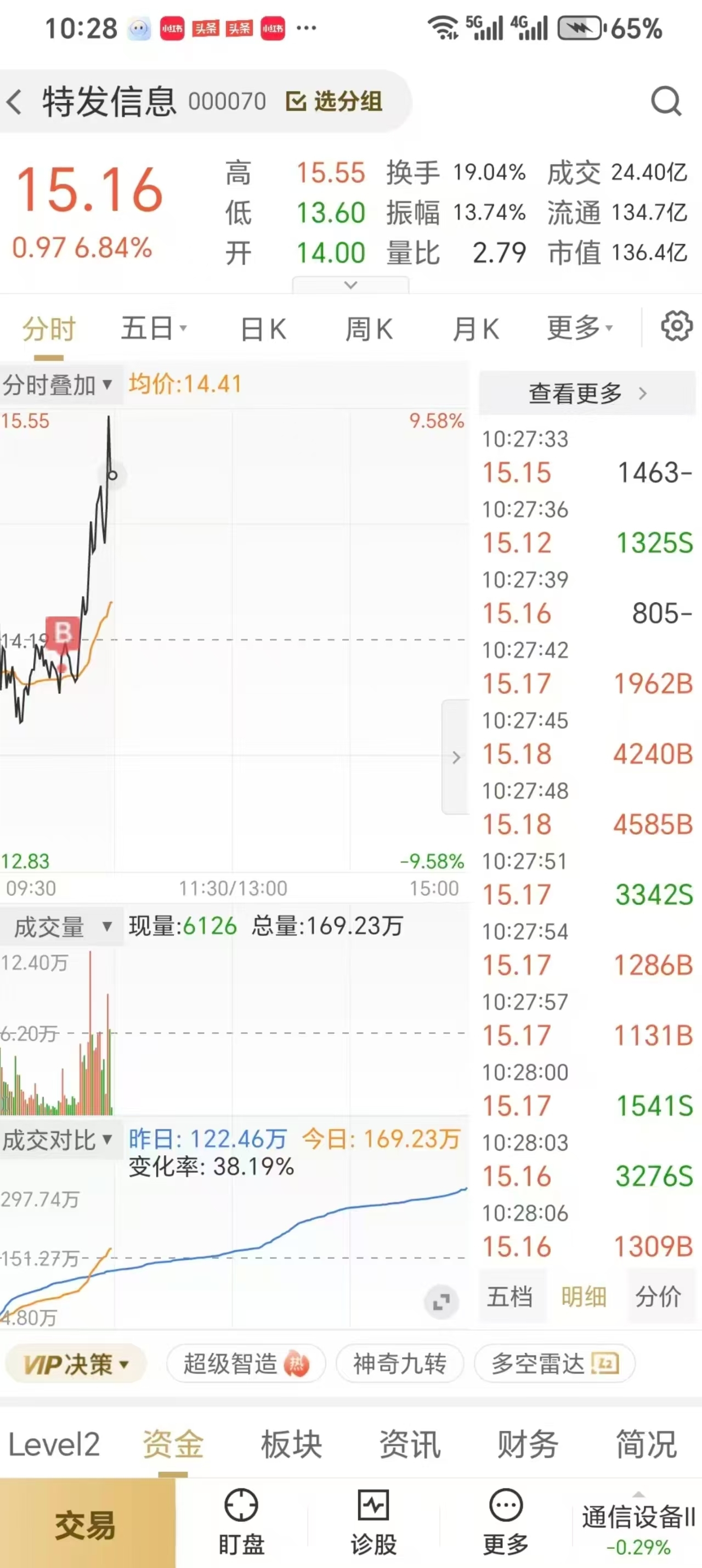 $特发信息(SZ000070)$ 早盘留意帐子上车了的7个点收获