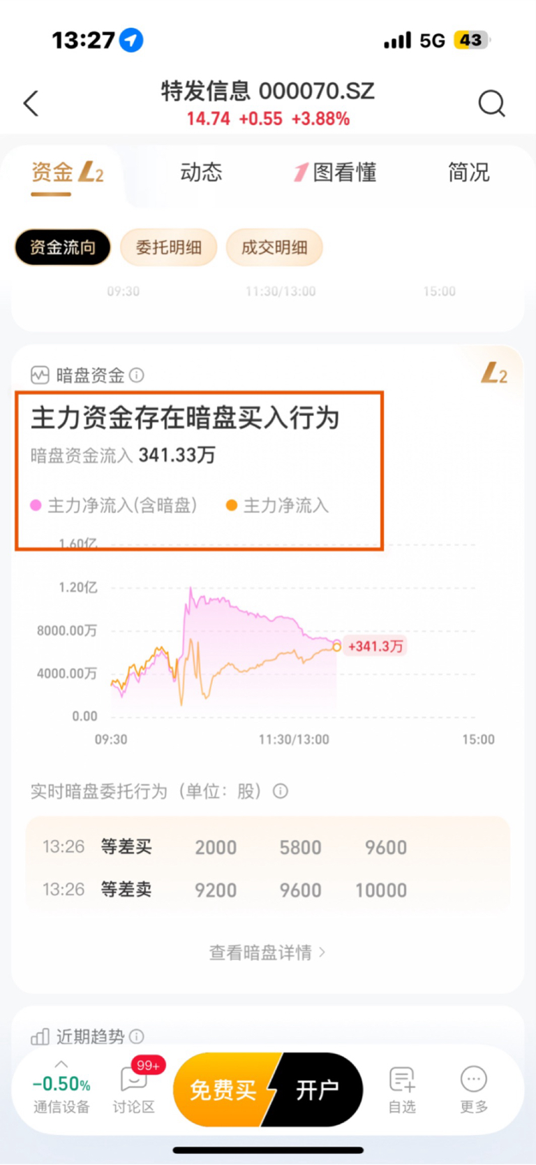 $特发信息(SZ000070)$ 这货暗盘资金一直在流出,本来流入2730万,现在直接跑了2000多万了。
