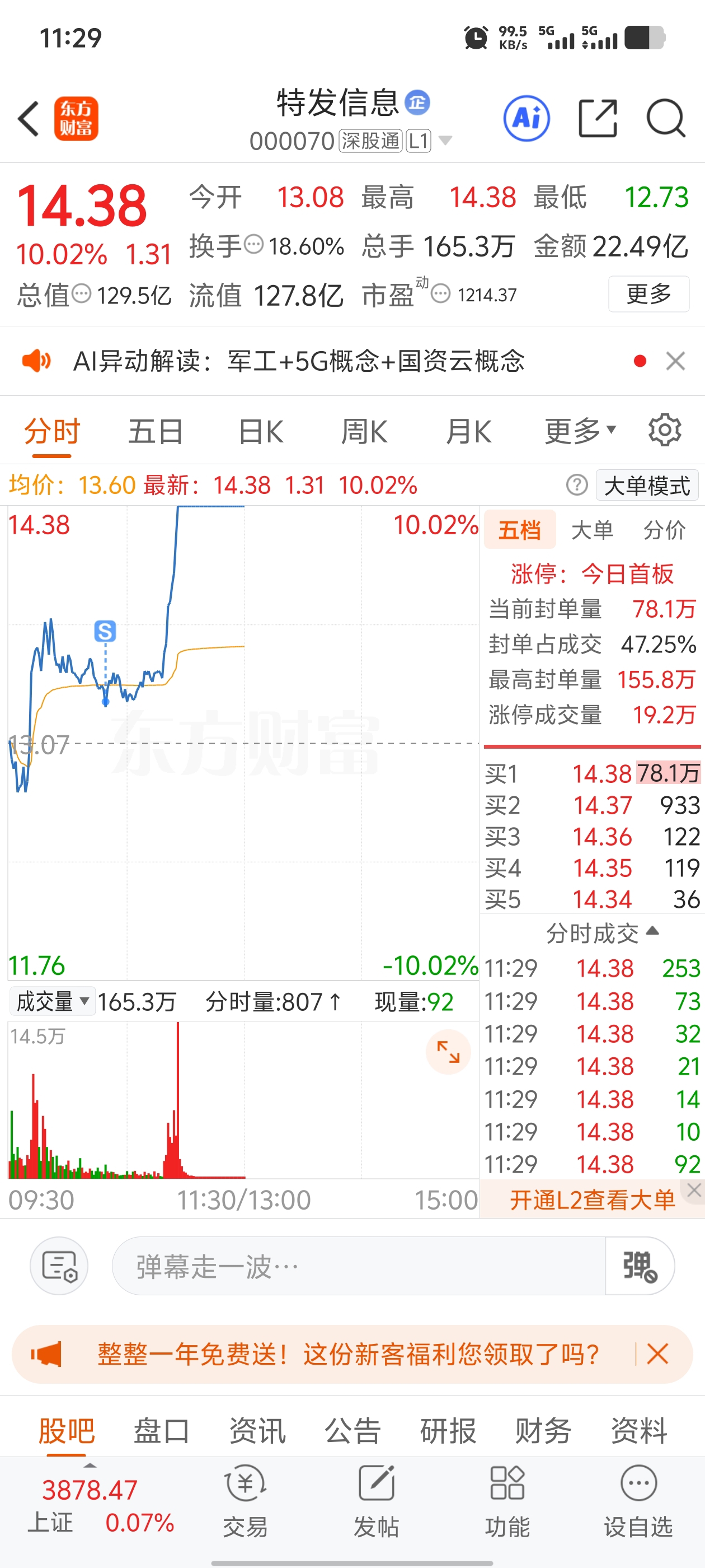 $特发信息(SZ000070)$ 嘿嘿今天错过两个涨停