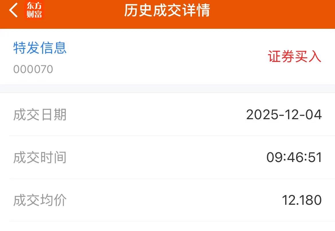 $特发信息(SZ000070)$ 问下成本有比我低的吗,昨天12.18买入的