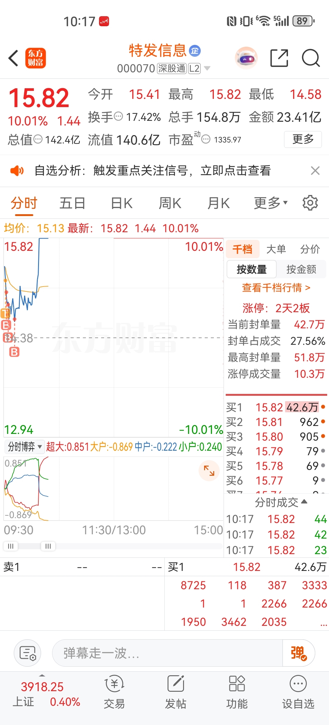 $特发信息(SZ000070)$ 5个点T很舒服