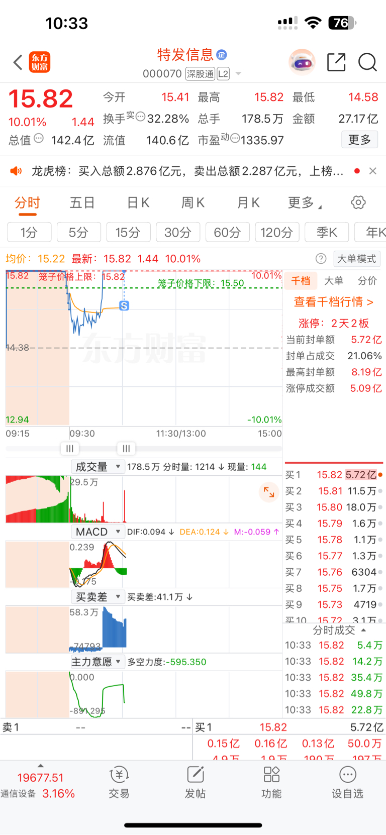 $特发信息(SZ000070)$ 这个票不是一般的剑,设置条件单开板卖出,无所谓了,下午调好电脑重新找标的