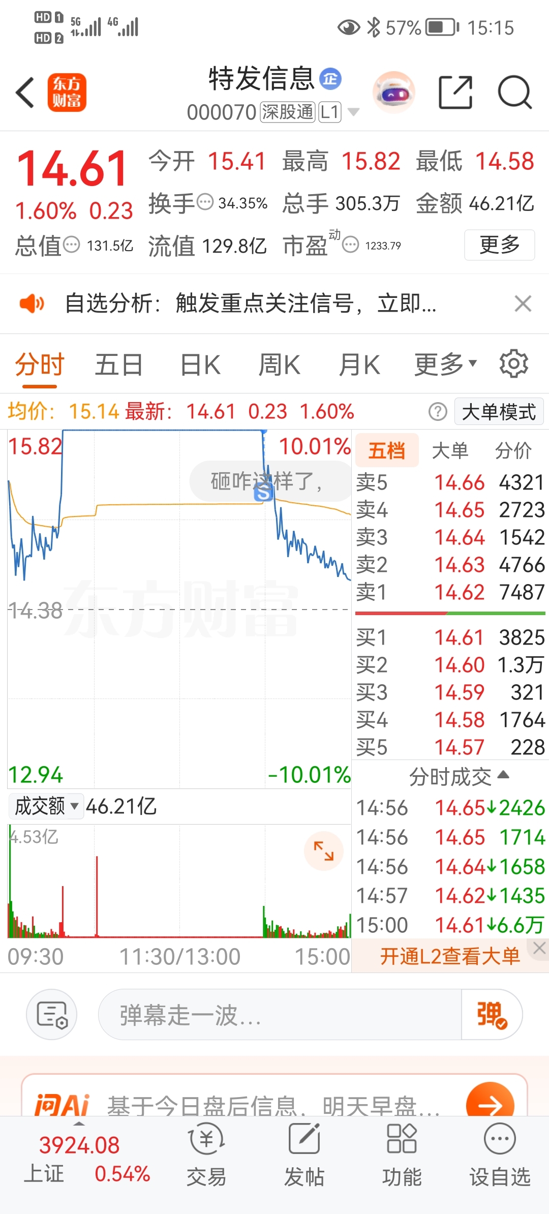 $特发信息(SZ000070)$ 不能太贪心。了,吃了2个涨停,清仓的明智