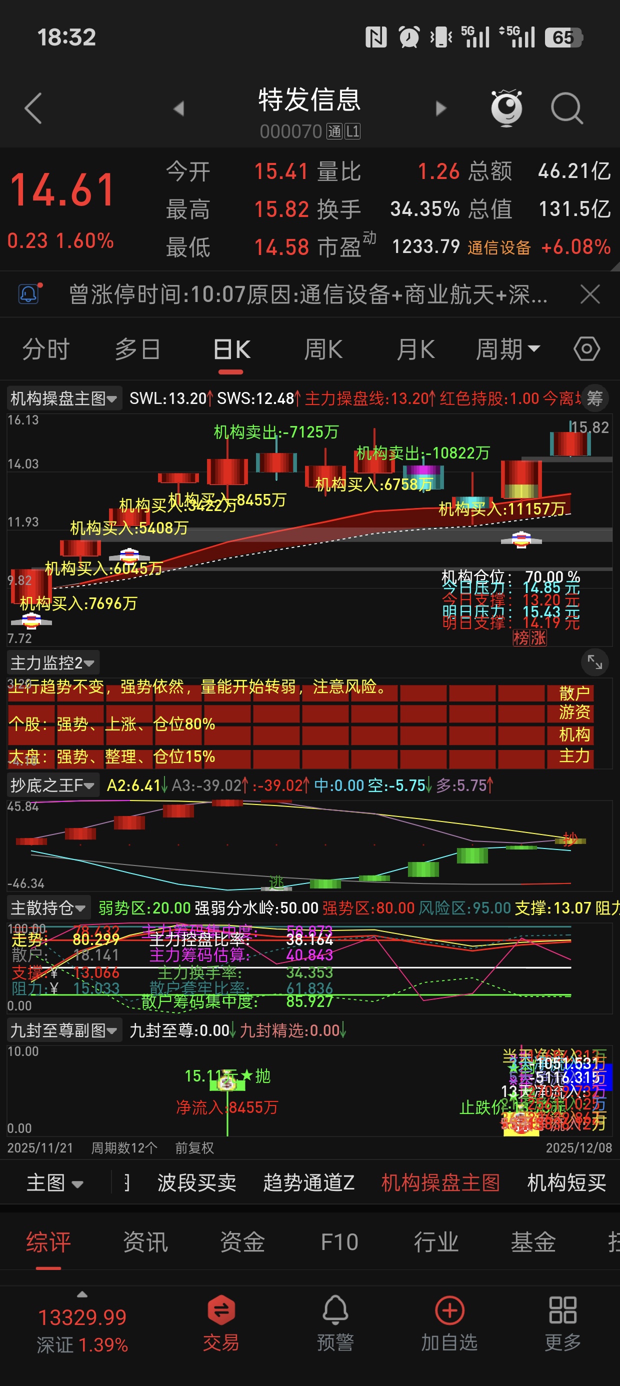 $特发信息(SZ000070)$ 反包涨停次日冲高回落模式
