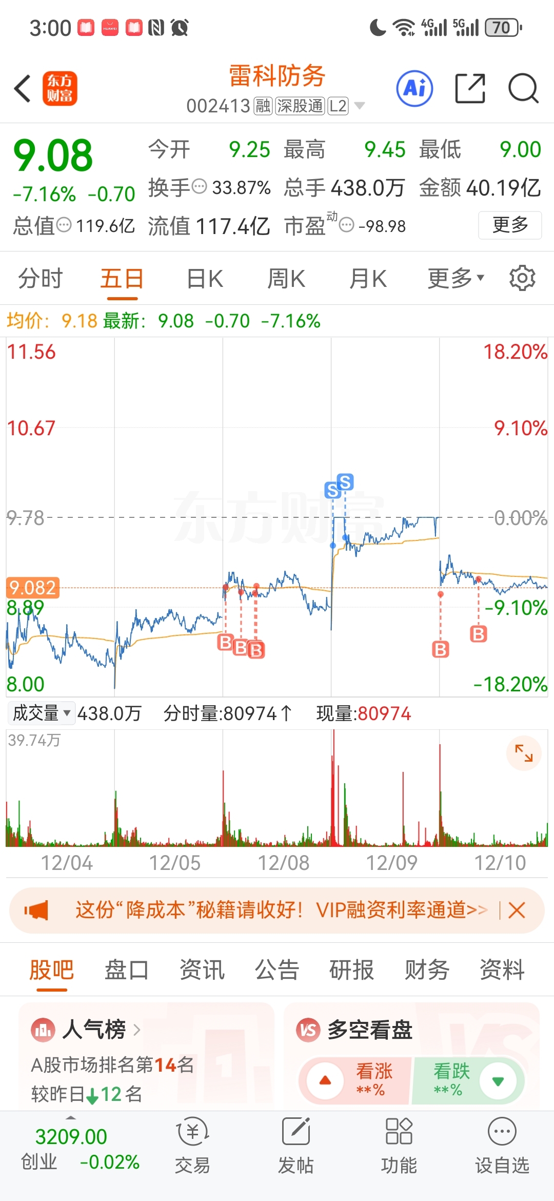 $特发信息(SZ000070)$ $雷科防务(SZ002413)$ $国机重装(SH601399)$ 特发可惜了,本来计划今天低开加仓的,没想到早上直接拉高出货被洗走了,本来大赚变小赚,清仓走人了。雷科昨天清仓走人,今天按计划低位接点,计划明天水下五个点以上加仓。国机本来想水下接的都没什么机会,明计划水下3个点左右加仓。另外商业航天新建了几只票,大行情每次调整都是机会。