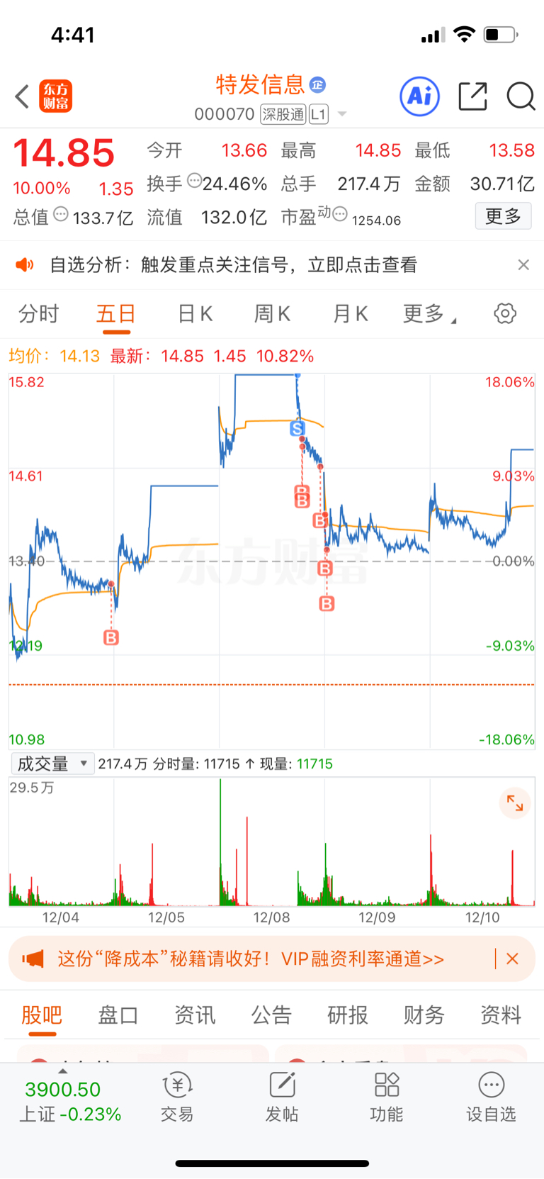 $特发信息(SZ000070)$ 还得练,老弟