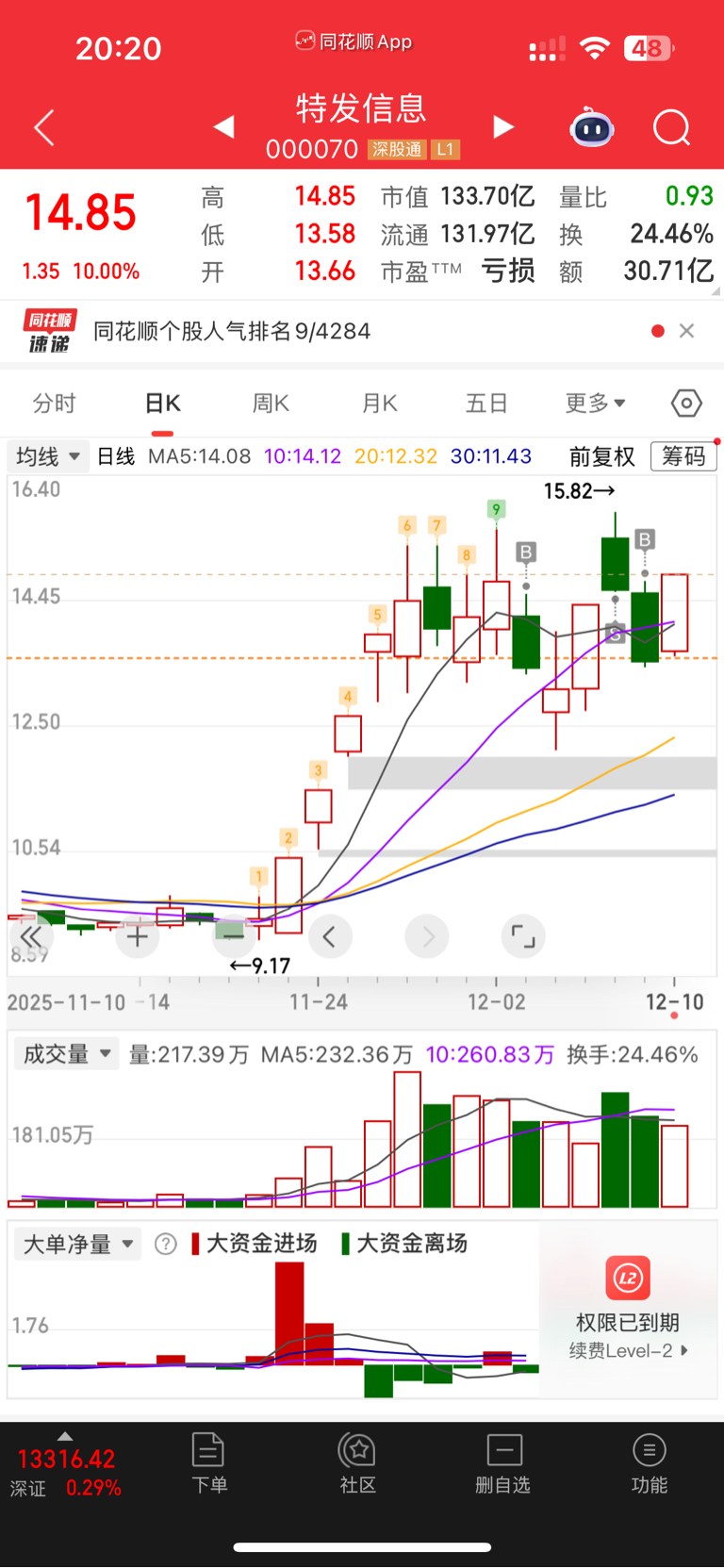 $特发信息(SZ000070)$ 二进二出