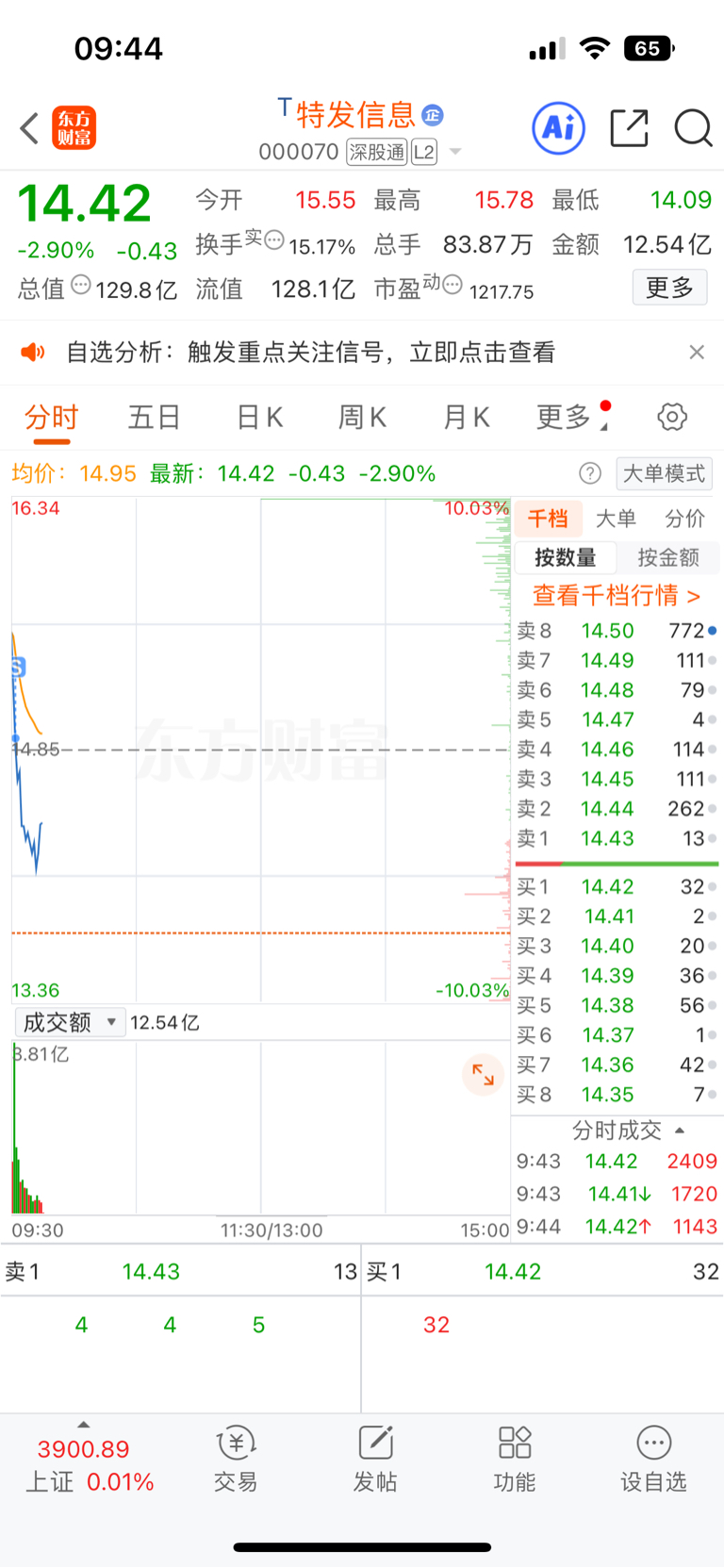 $特发信息(SZ000070)$ 这玩意可真不是一般人能玩的 吓死人。
