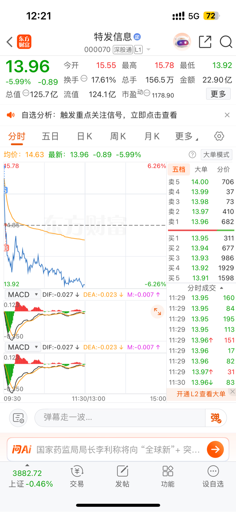 $特发信息(SZ000070)$ 卖在最高点,接回来干嘛