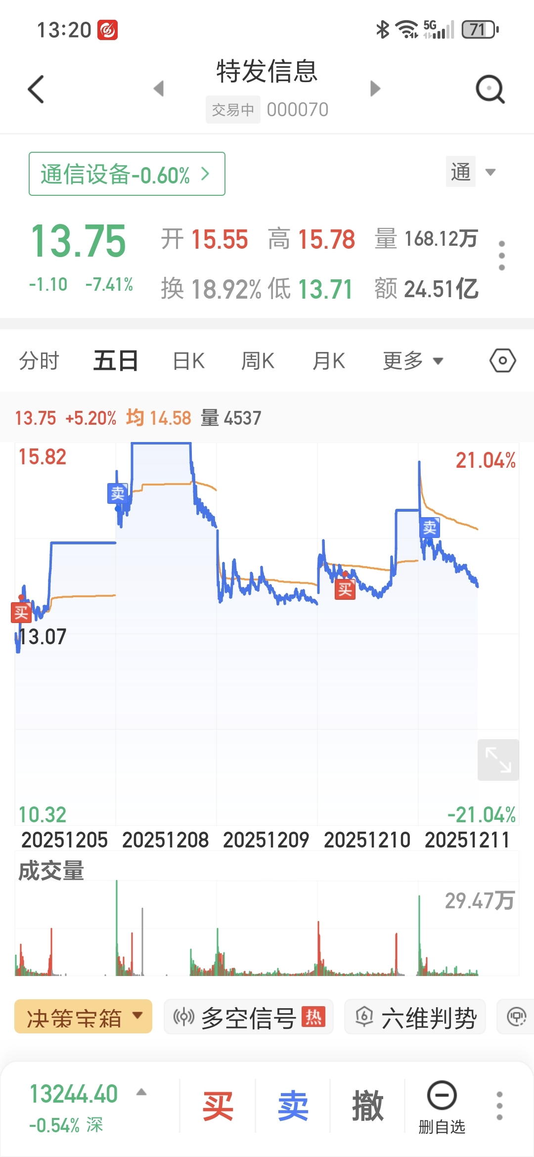 $特发信息(SZ000070)$ 特发太难受了,两次蚊子肉。第一次开盘跑结果板上去了。今天开盘没有跑想着格局一下,结果得绿盘跑。太难了太难了。