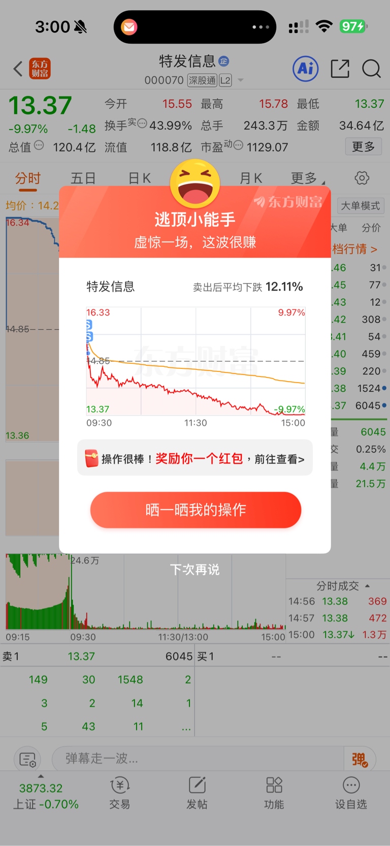温馨提示: 1.根据《证券法》规定,禁止编造、传播虚假信息或者误导性信息,扰乱证券市场;2.用户在本社区发表的所有资料、言论等仅代表个人观点,与本网站立场无关,不对您构成任何投资建议。用户应基于自己的独立判断,自行决定证券投资并承担相应风险。《东方财富社区管理规定》