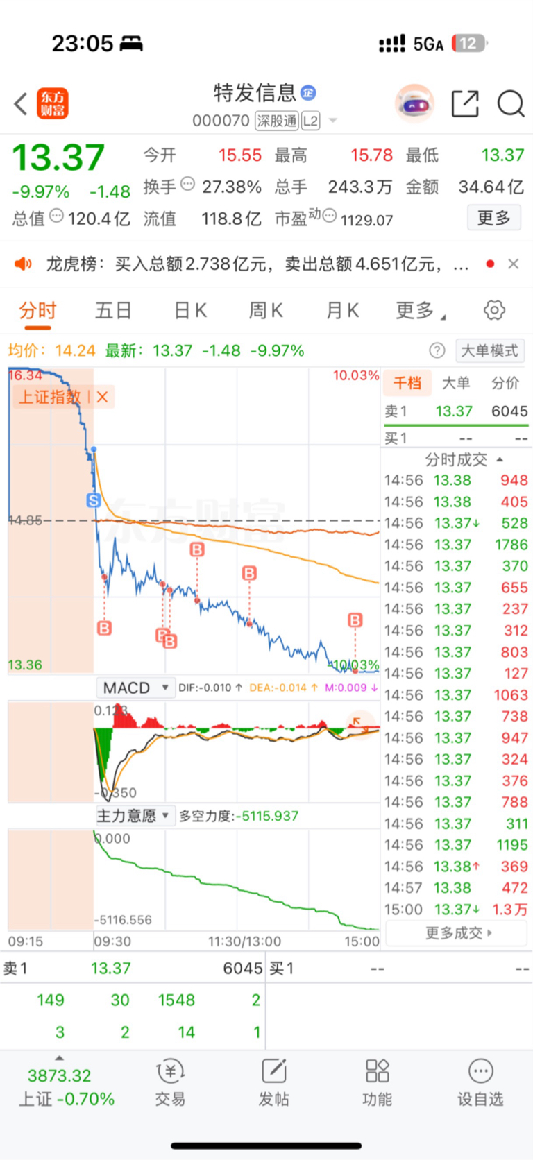 $特发信息(SZ000070)$ 逃顶后 一直补无惧跌停 果然盘后有利好