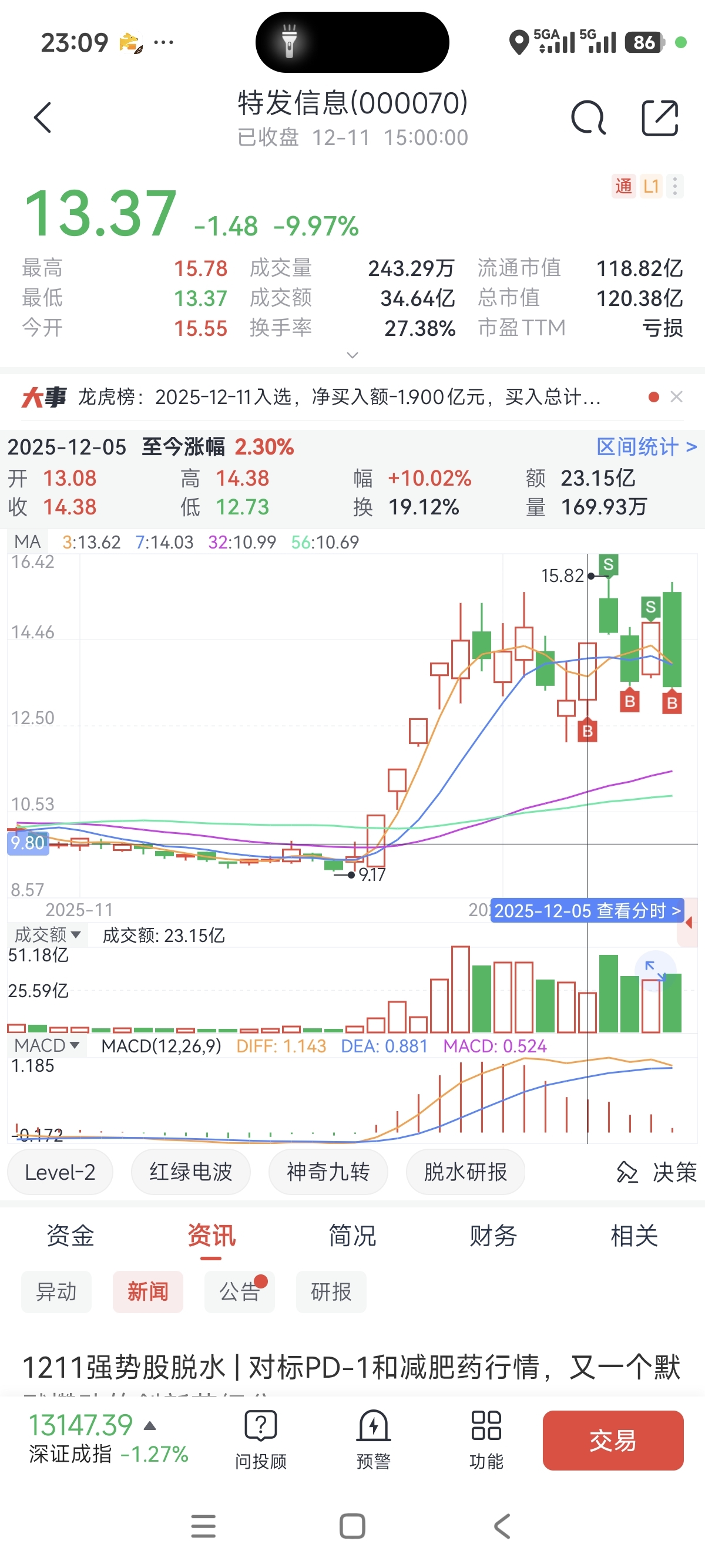 $特发信息(SZ000070)$ 这票有意思,这周都在搞它,节奏还挺好,两次都卖在涨停板,今天又抄底了,明天或者下周一应该能起来