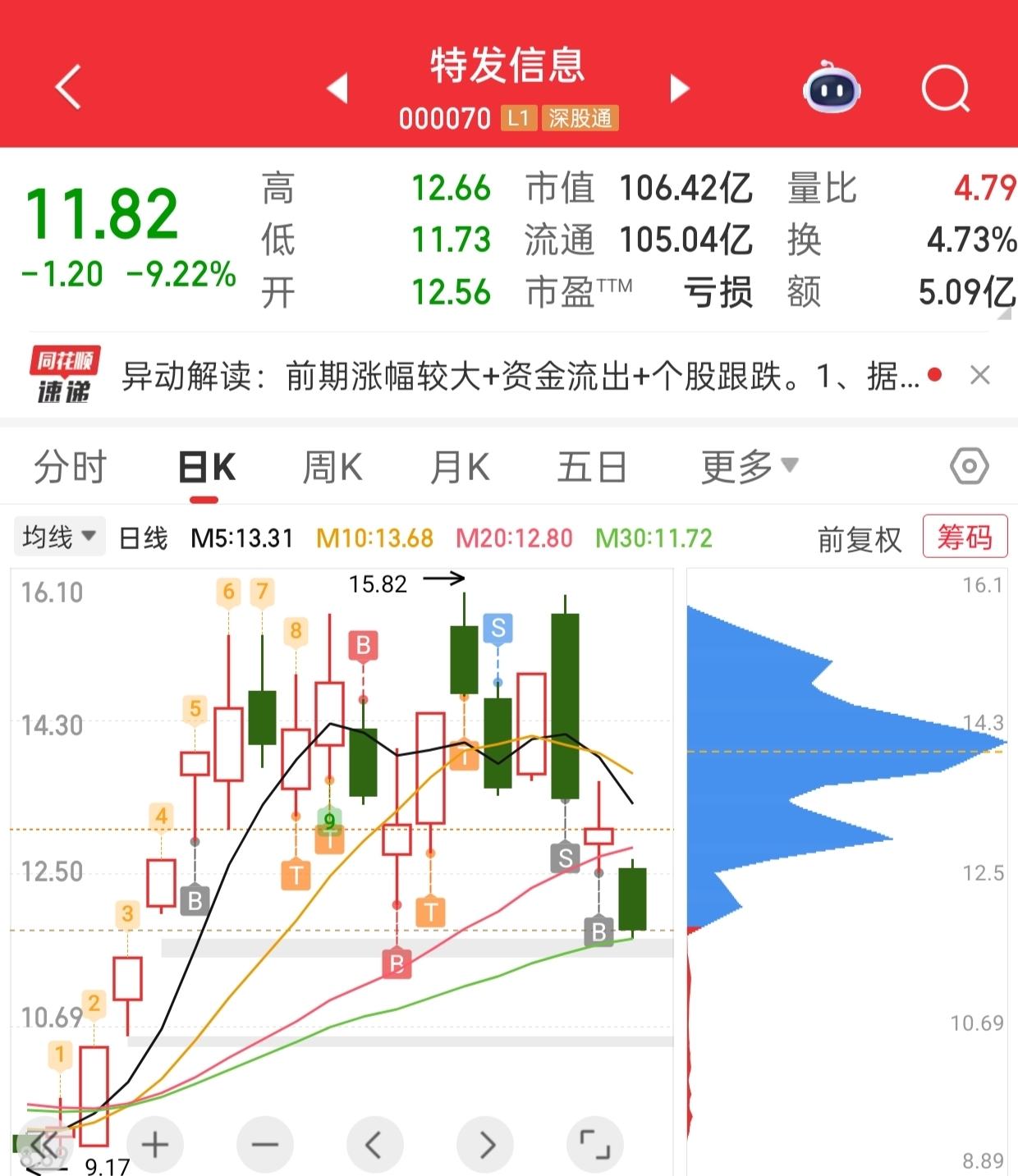 $特发信息(SZ000070)$ 买了100股不至于砸我跌停吧,不就赚了你点钱走了吗?回来至于这么砸我