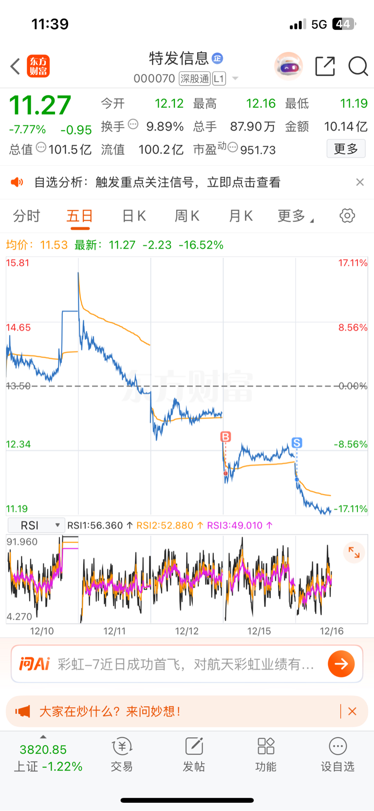 $特发信息(SZ000070)$ 汤都不给一口 狠