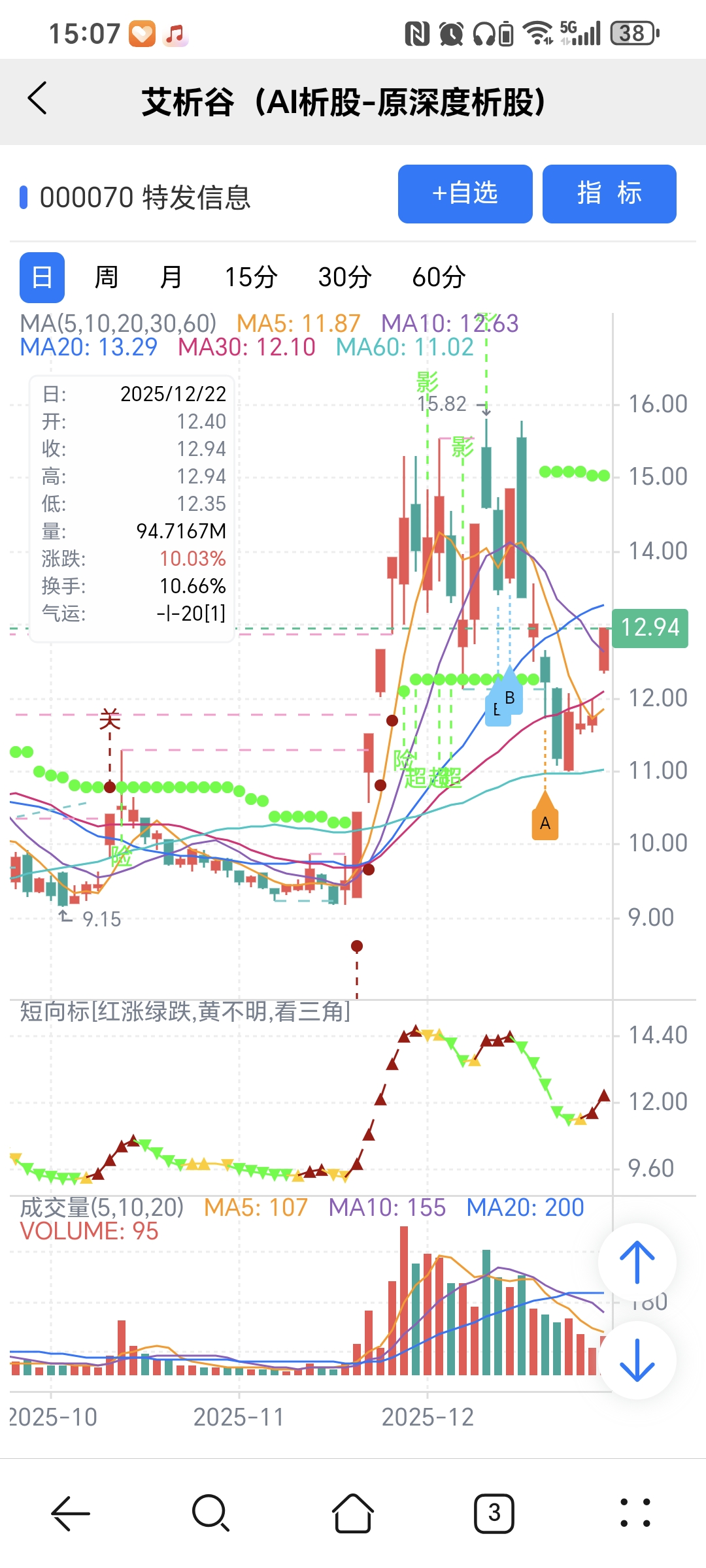 红绿小圆点是艾析谷的量化指标-超级短趋线,是趋势跟踪+突破类的量化指标,完全免费。