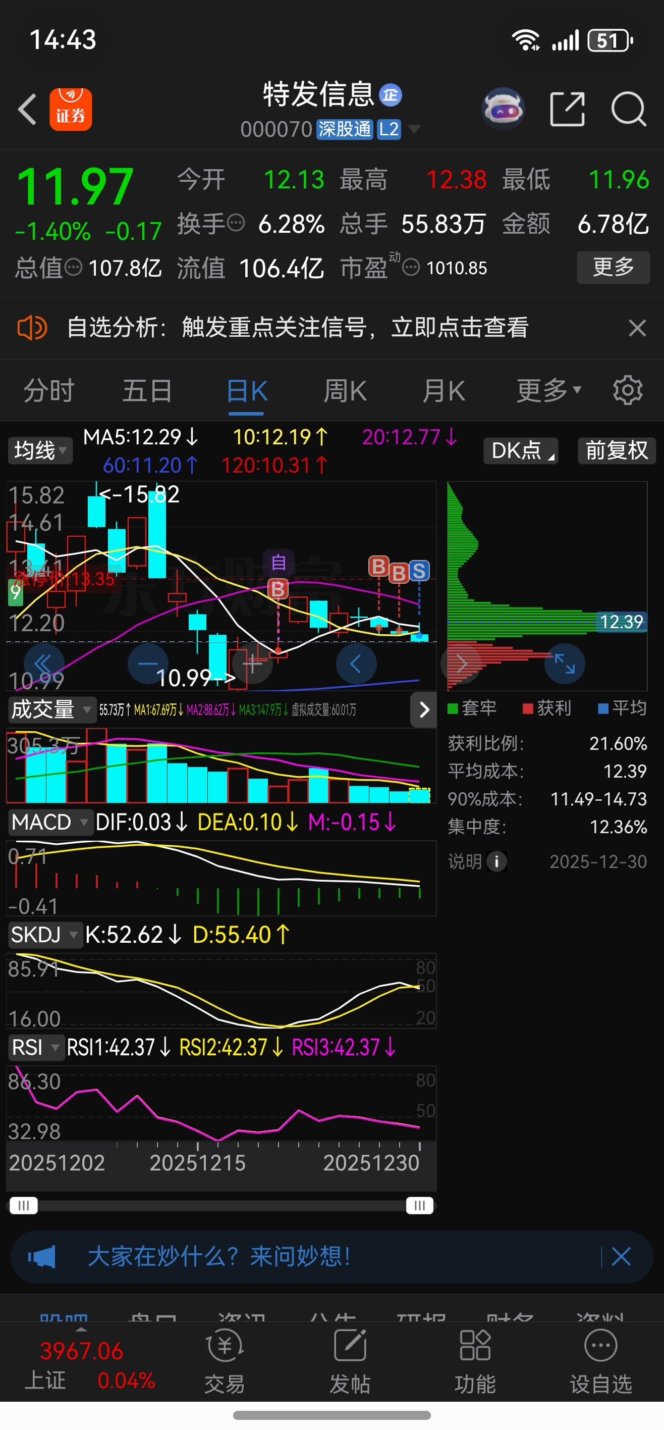 $特发信息(SZ000070)$ 我认栽了。赔个手续费,涨停那天没走。