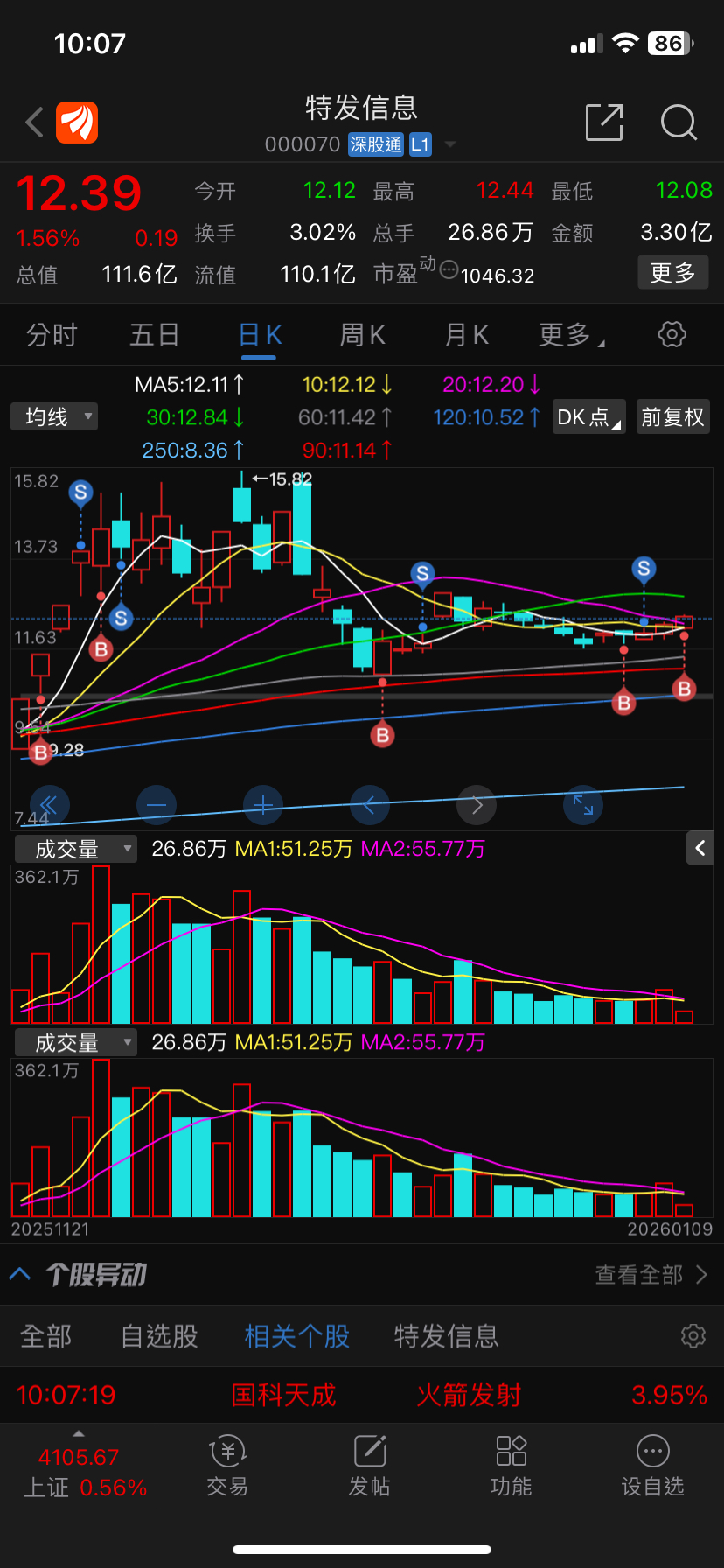 $特发信息(SZ000070)$ 这个股我进了4次赚了4次只是一次比一次少,第一次30个点第二次16个点,第三次8个点,第四次两个点,这是第五次进,赚八个点应该可以吧。