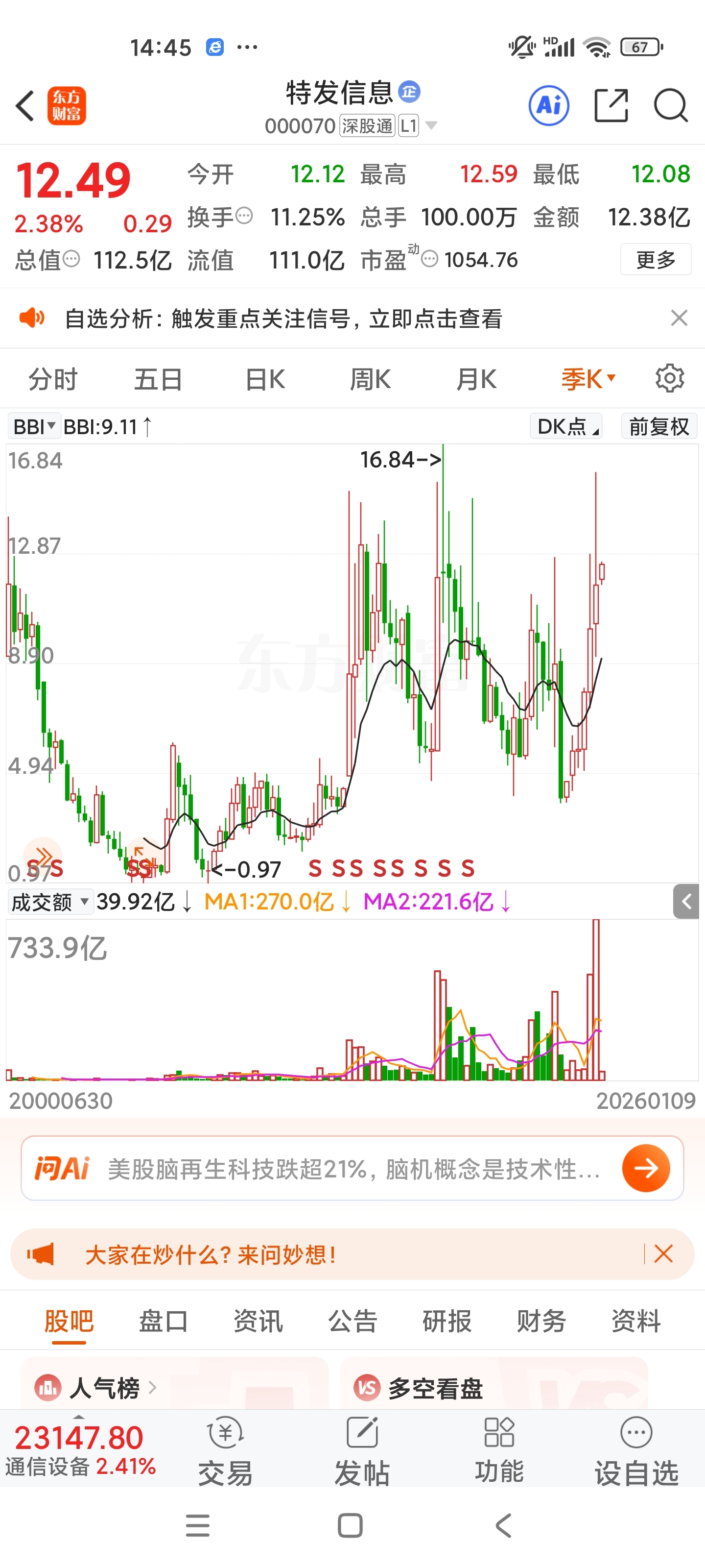 $特发信息(SZ000070)$ 这一轮应该冲击历史新高