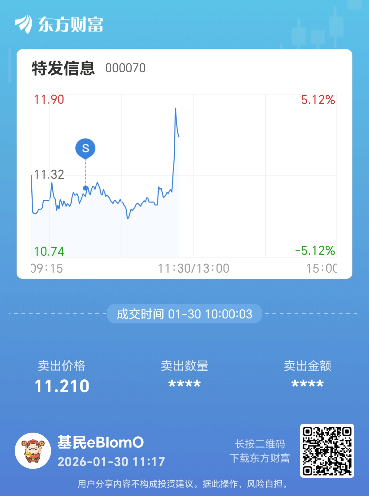 温馨提示: 1.根据《证券法》规定,禁止编造、传播虚假信息或者误导性信息,扰乱证券市场;2.用户在本社区发表的所有资料、言论等仅代表个人观点,与本网站立场无关,不对您构成任何投资建议。用户应基于自己的独立判断,自行决定证券投资并承担相应风险。《东方财富社区管理规定》