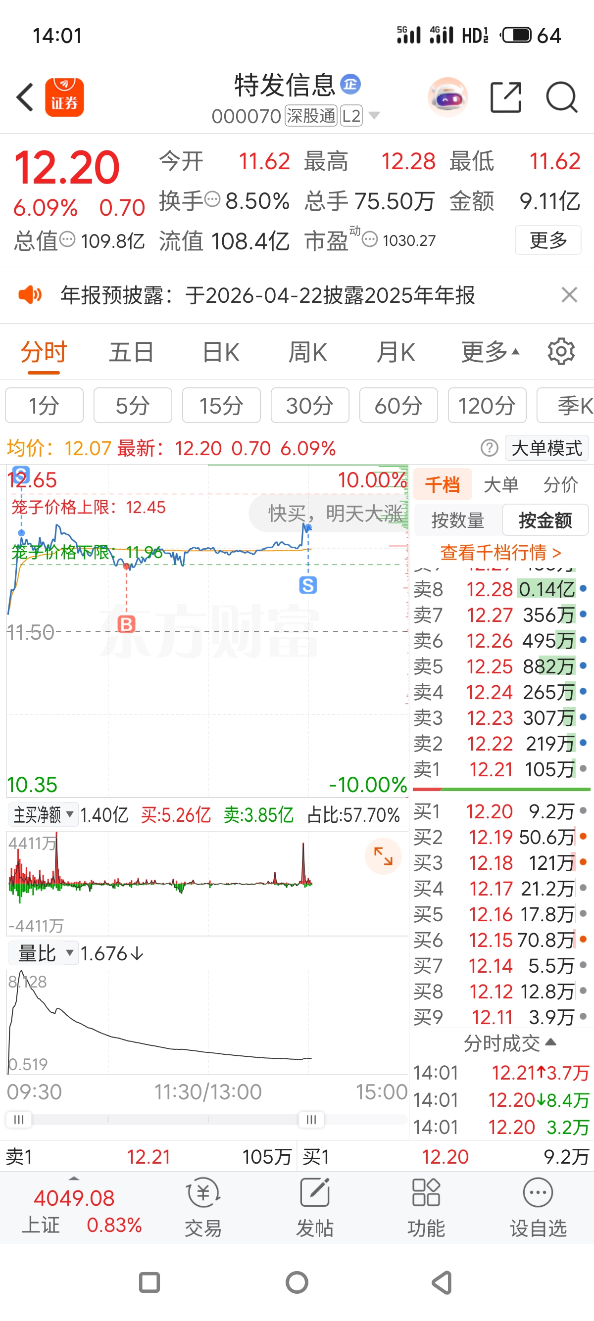 $特发信息(SZ000070)$ 没t硬做,情愿亏点手续费也别给庄占便宜,还不跑就是傻,这拉几就算今天涨停,明天也是会被闷杀