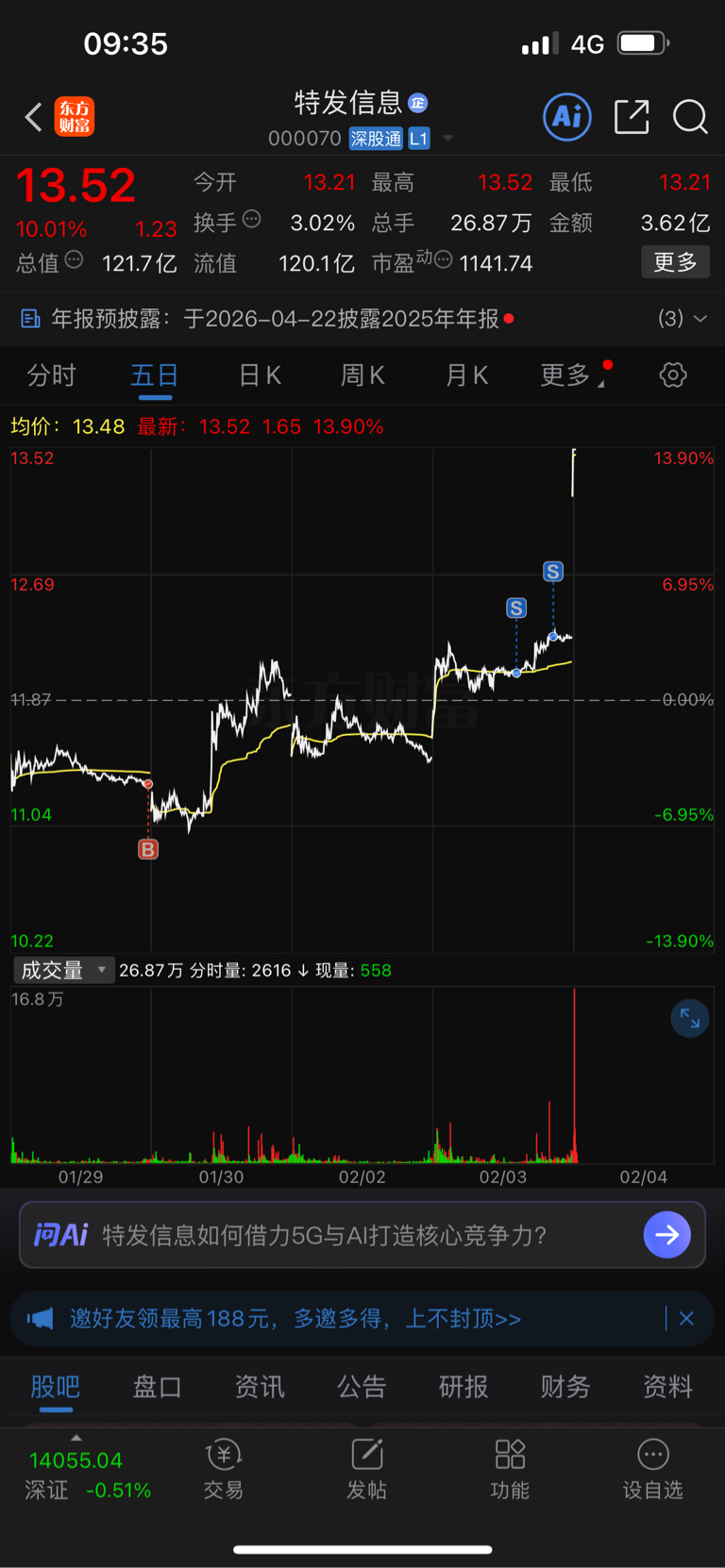 郑重声明:用户在财富号/股吧/博客等社区发表的所有信息(包括但不限于文字、视频、音频、数据及图表)仅代表个人观点,与本网站立场无关,不对您构成任何投资建议,据此操作风险自担。请勿相信代客理财、免费荐股和炒股培训等宣传内容,远离非法证券活动。请勿添加发言用户的手机号码、公众号、微博、微信及QQ等信息,谨防上当受骗!
