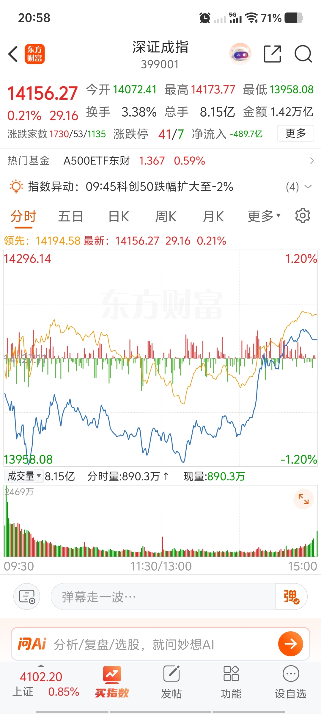 看了下三大股指,尾盘疯狂拉升,直接V红,明天特发大概率一字涨停,,特发是今天市场