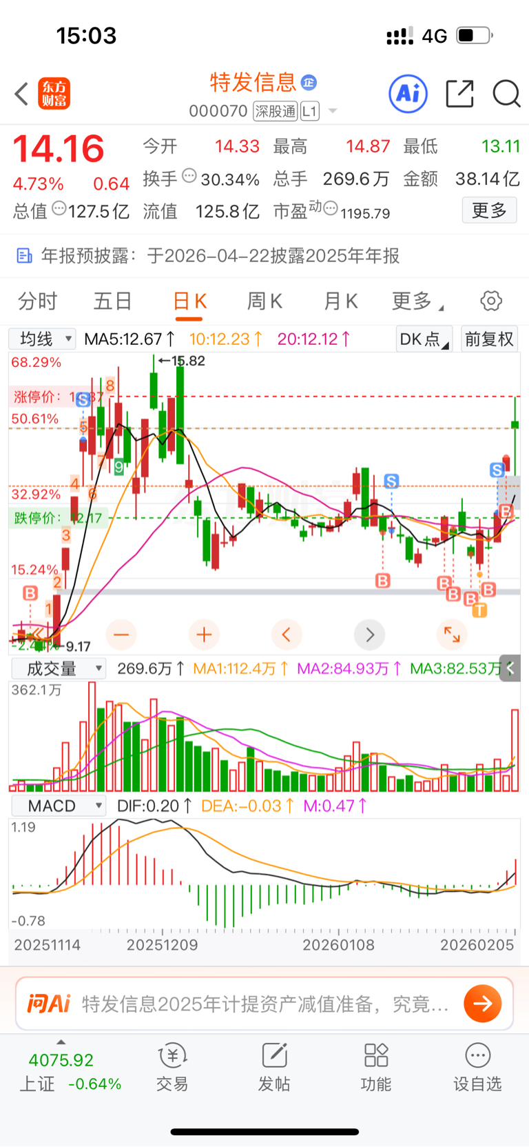 $特发信息(SZ000070)$ 格局着 也没T 看明天吧