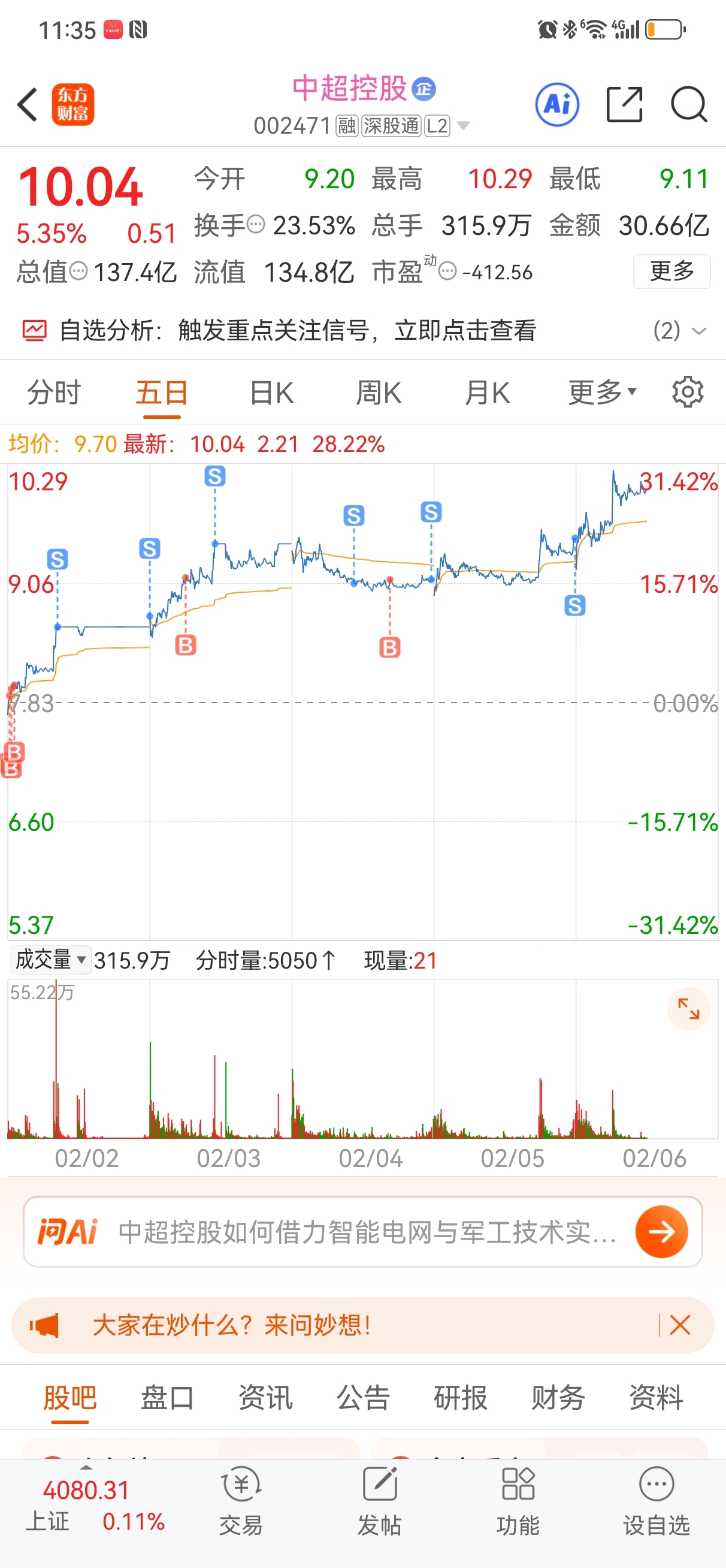 $特发信息(SZ000070)$ 上次看好了中超控股。这次对你有点兴趣!下午有大哥点火我就进场