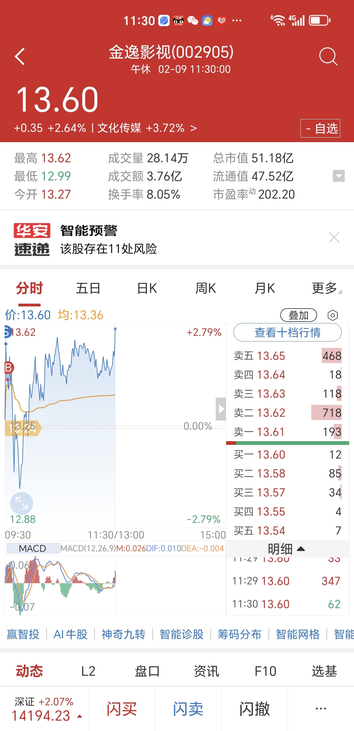 水下接回特发信息,金逸影城早盘高抛低吸继续格局中