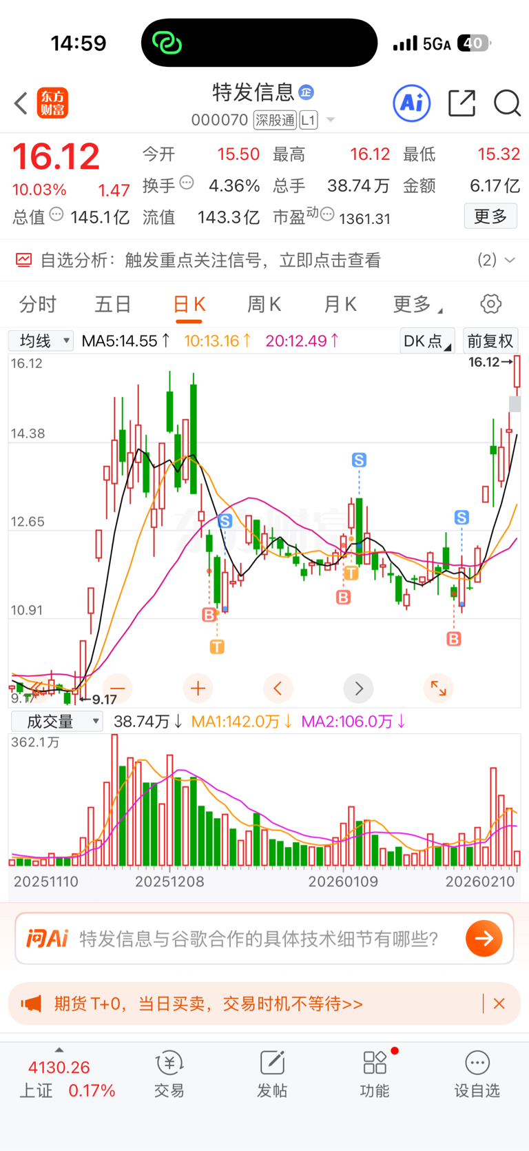 $特发信息(SZ000070)$ 买好几次都亏,卖了就涨50%