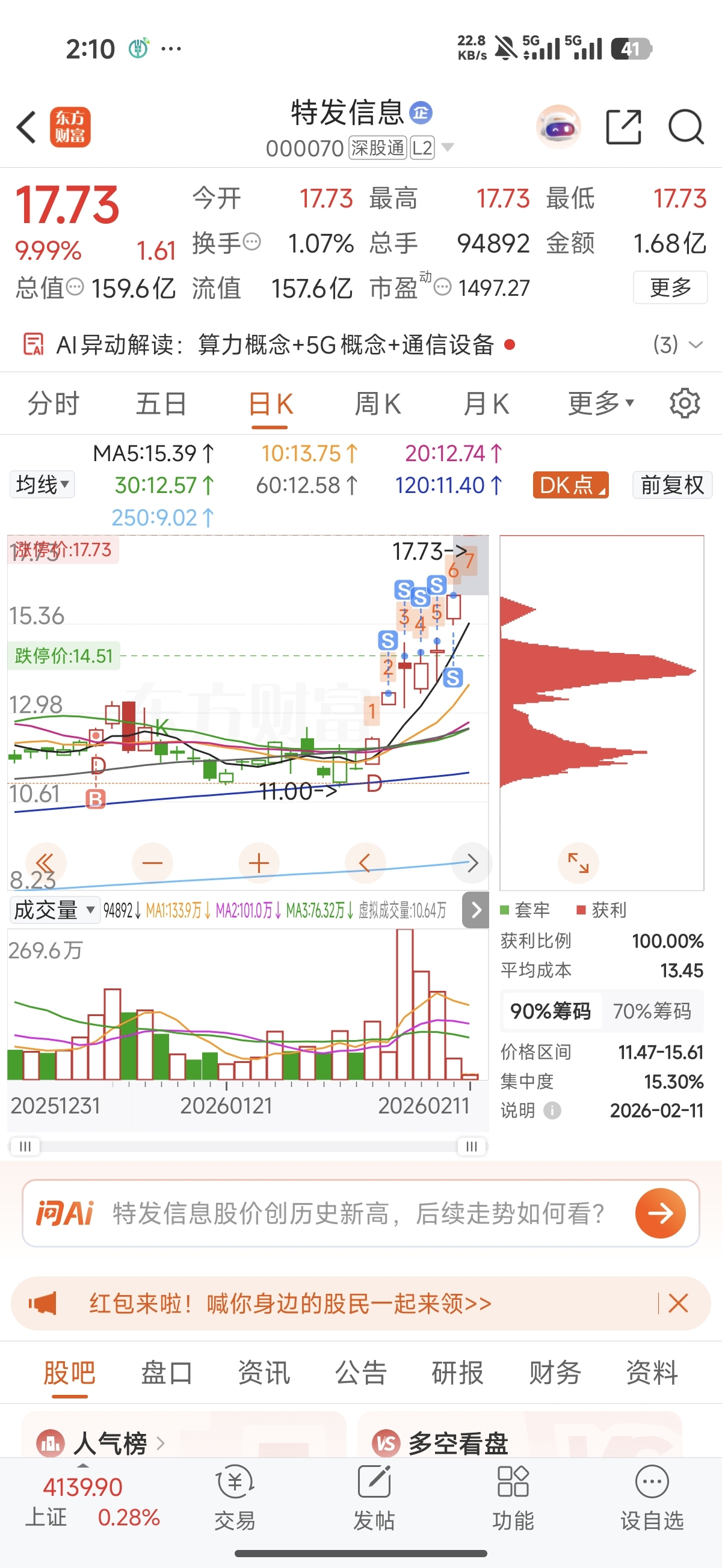 $特发信息(SZ000070)$ 卖飞了