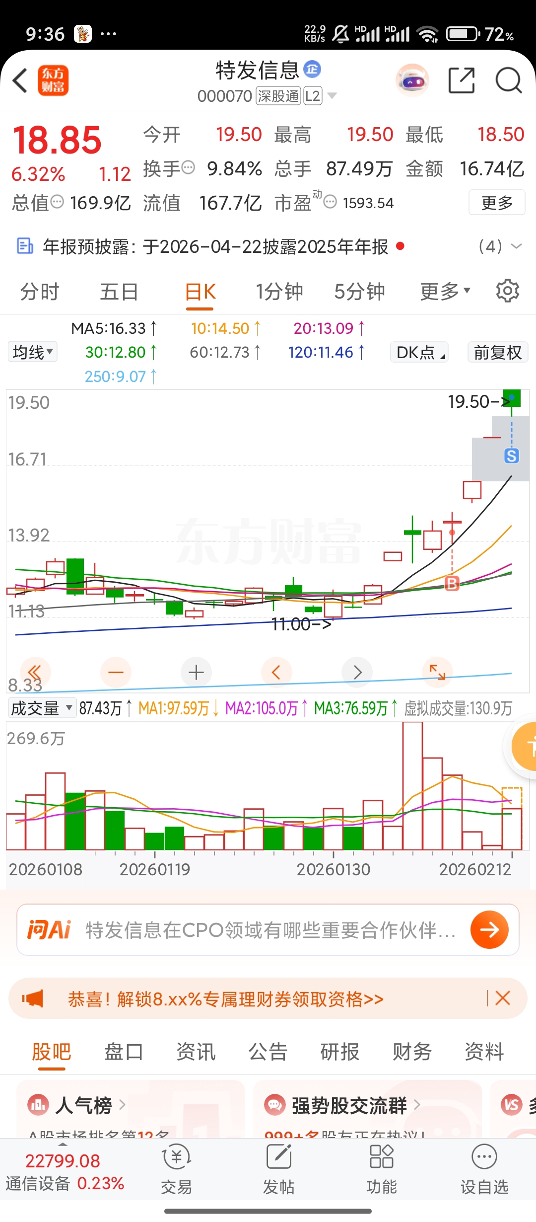 $特发信息(SZ000070)$ 清仓了,很强了,早盘竞价我估摸是小资金兑现春节红包跑路了,随后就是开源的不格局,还是有封板预期的,不过质量可能不太高了,先跑了,可以参考大位科技,应该可以回封。我就不去了。祝车上的发财。