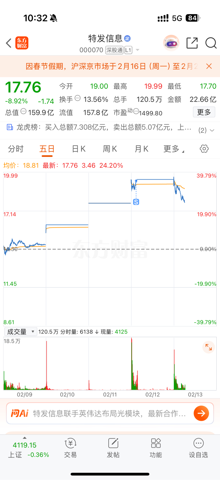 $特发信息(SZ000070)$ 见好就收,留下的发财过个好年