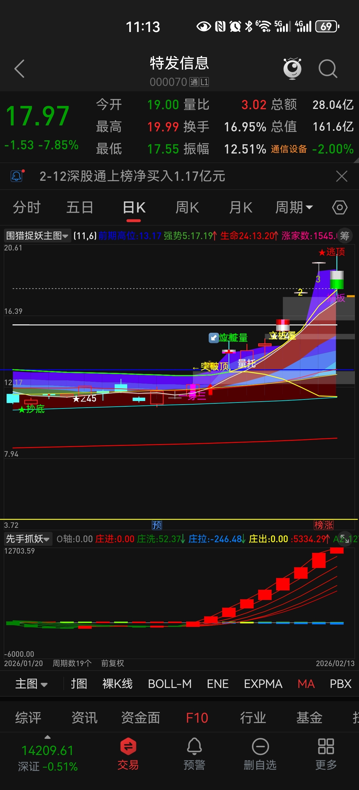 $特发信息(SZ000070)$  对字数双底形成!下午爆量拉涨停迎接年后大红包!